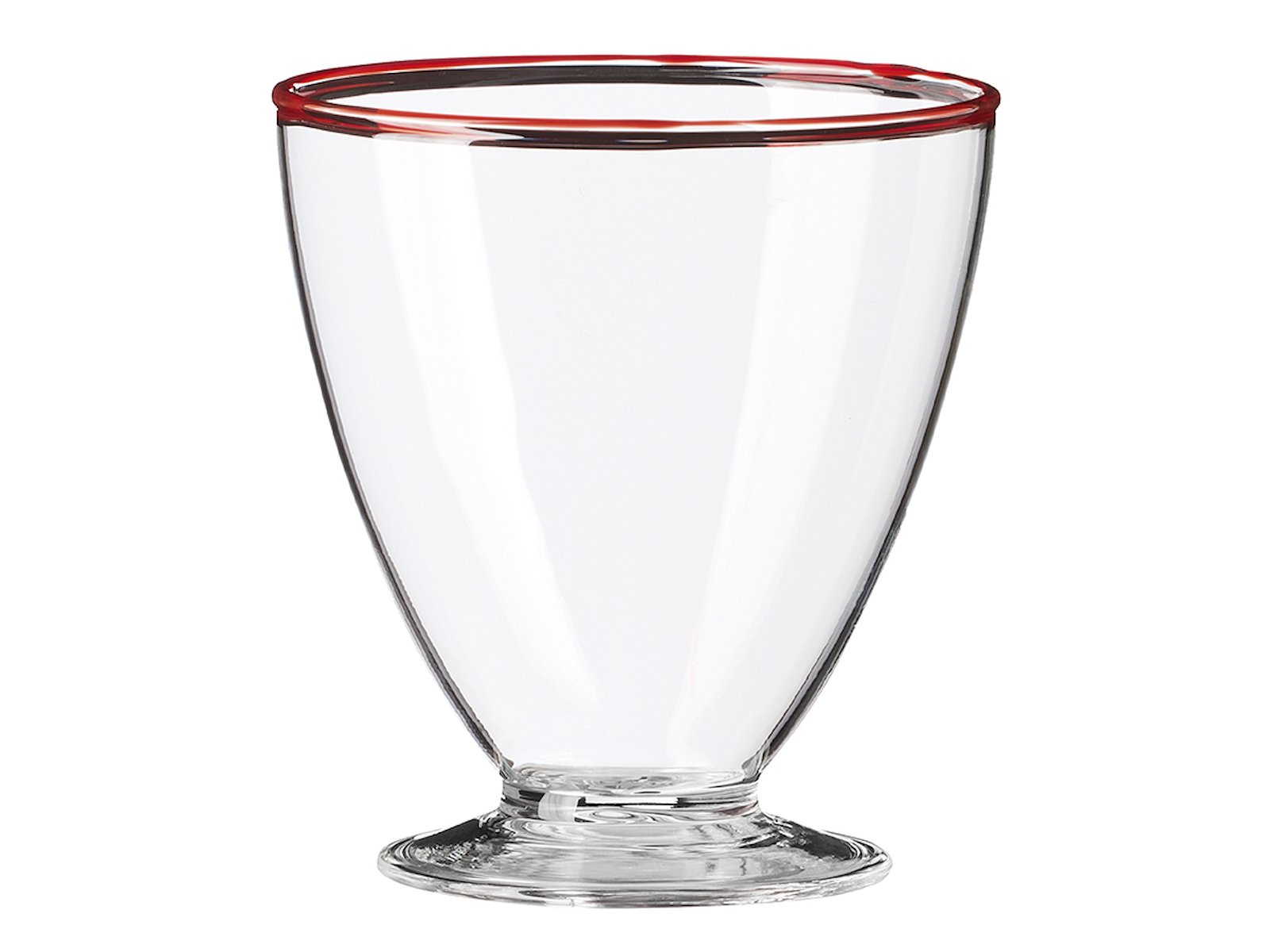 - Duradero vaso de borosilicato con elegante borde rojo