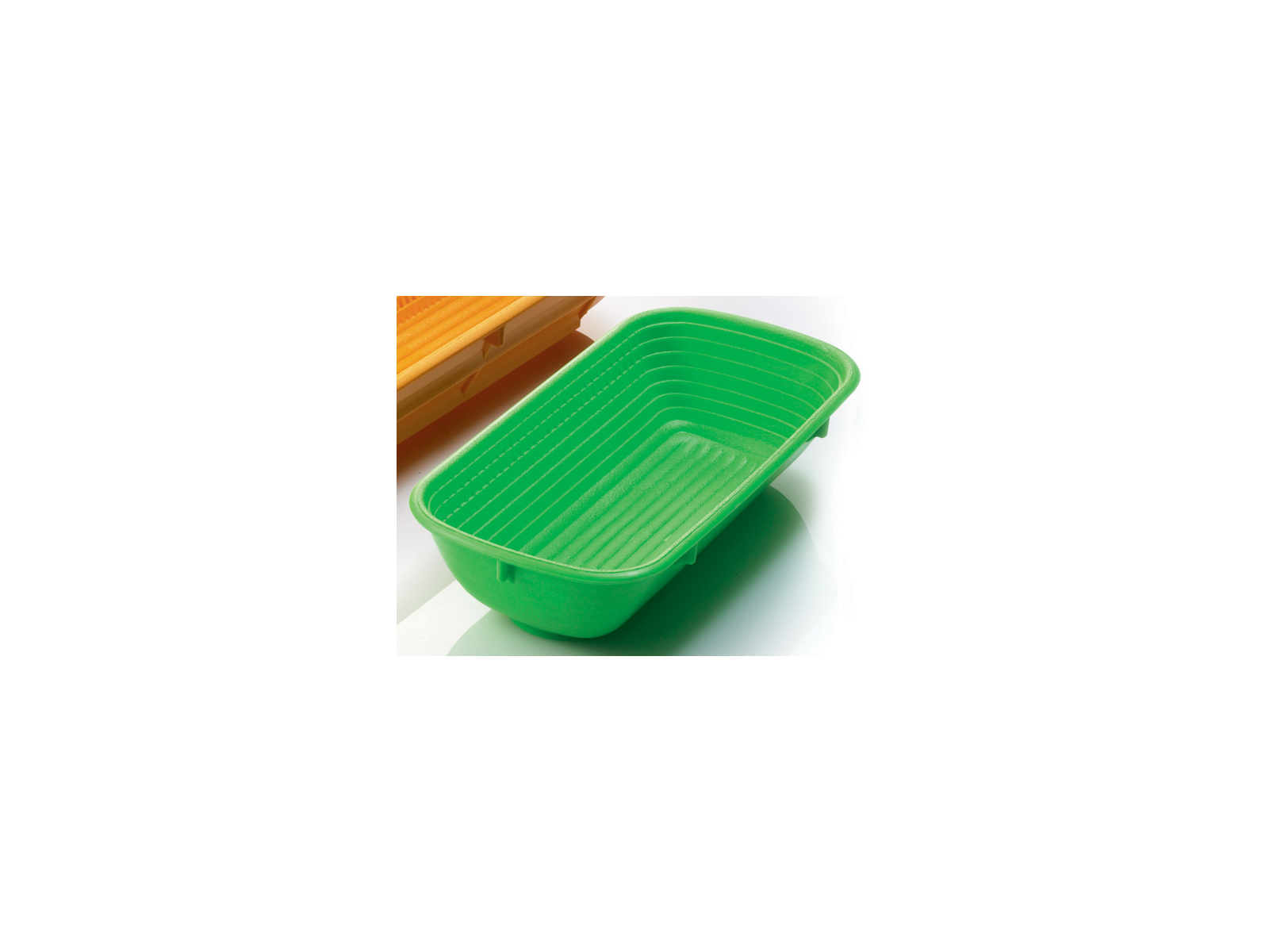 La forma ovalada permite que la masa se expanda de manera natural, creando así la base para un pan sabroso con una buena estructura de miga. La cesta verde tiene una superficie lisa e impermeable que evita que la masa se adhiera, facilitando el desmoldeo una vez que ha terminado de fermentar. La calidad del material asegura que la cesta mantenga su forma incluso después de un uso repetido.