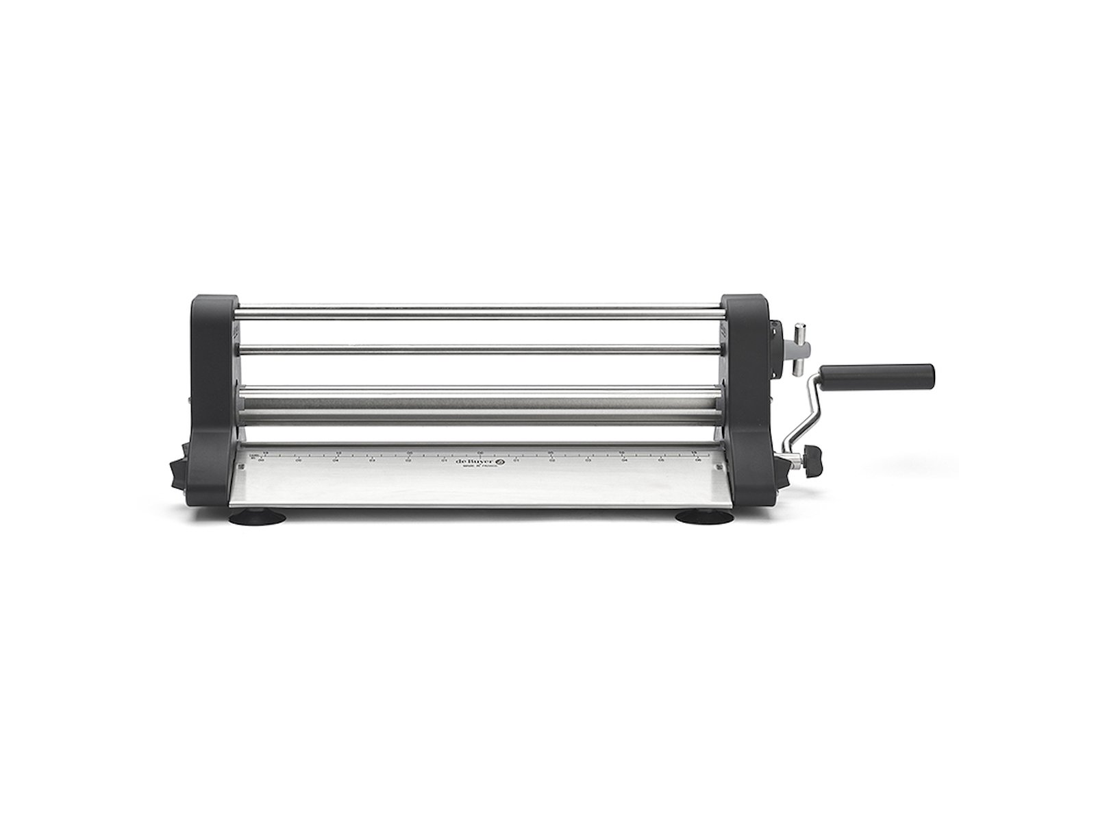 Los rodillos de masa tienen un ancho de 34 centímetros, lo que ofrece una buena superficie de trabajo para la mayoría de las tareas de horneado comunes. El ajuste de grosor se puede modificar entre 15 mm para masas más gruesas y hasta 0,3 mm para las masas más delgadas. Los rodillos están diseñados para uso profesional y pueden manejar la carga diaria en una panadería o pastelería activa.
