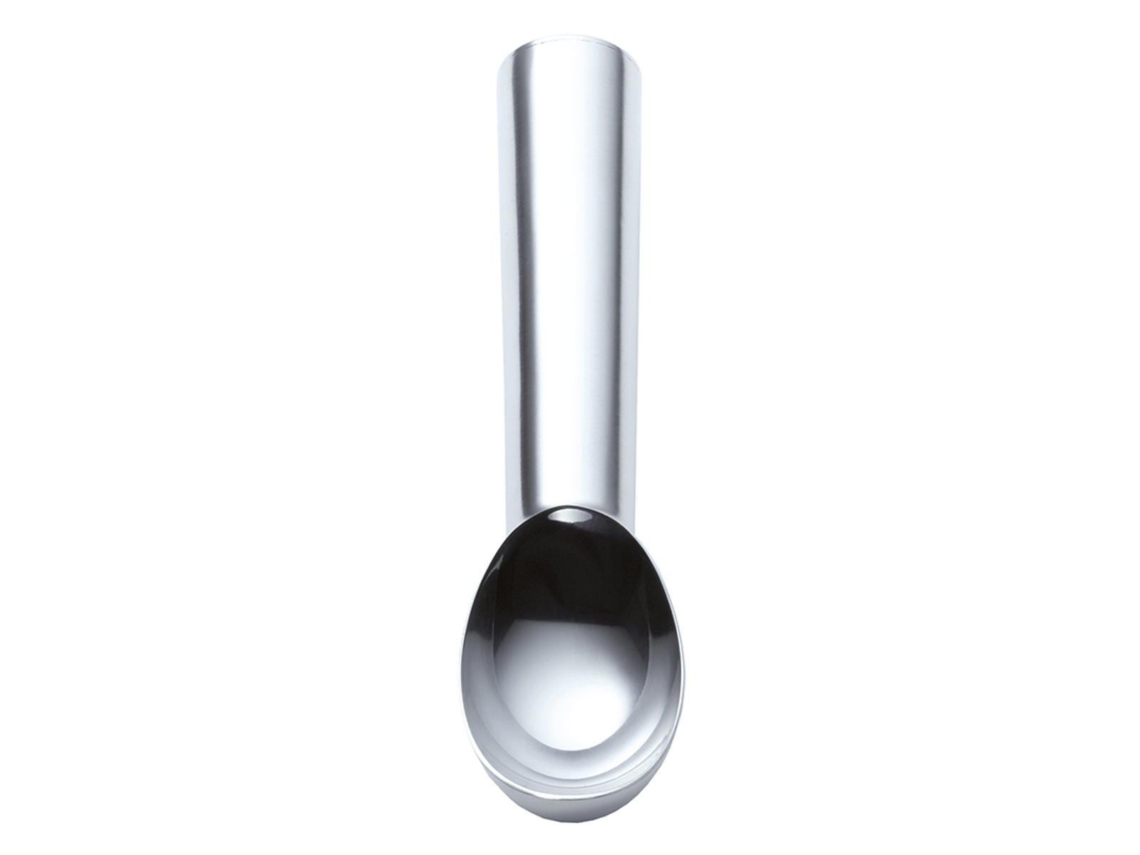 Con un peso total de solo 160 gramos y un mango de 115 mm de largo, el cucharón se sostiene cómodamente en la mano. Su peso ligero reduce la fatiga durante el uso repetido, lo cual es especialmente importante en entornos de servicio ocupados. La forma ovalada permite crear hermosas y uniformes bolas de helado, que se presentan bien en el plato y aportan un toque profesional a tus postres.