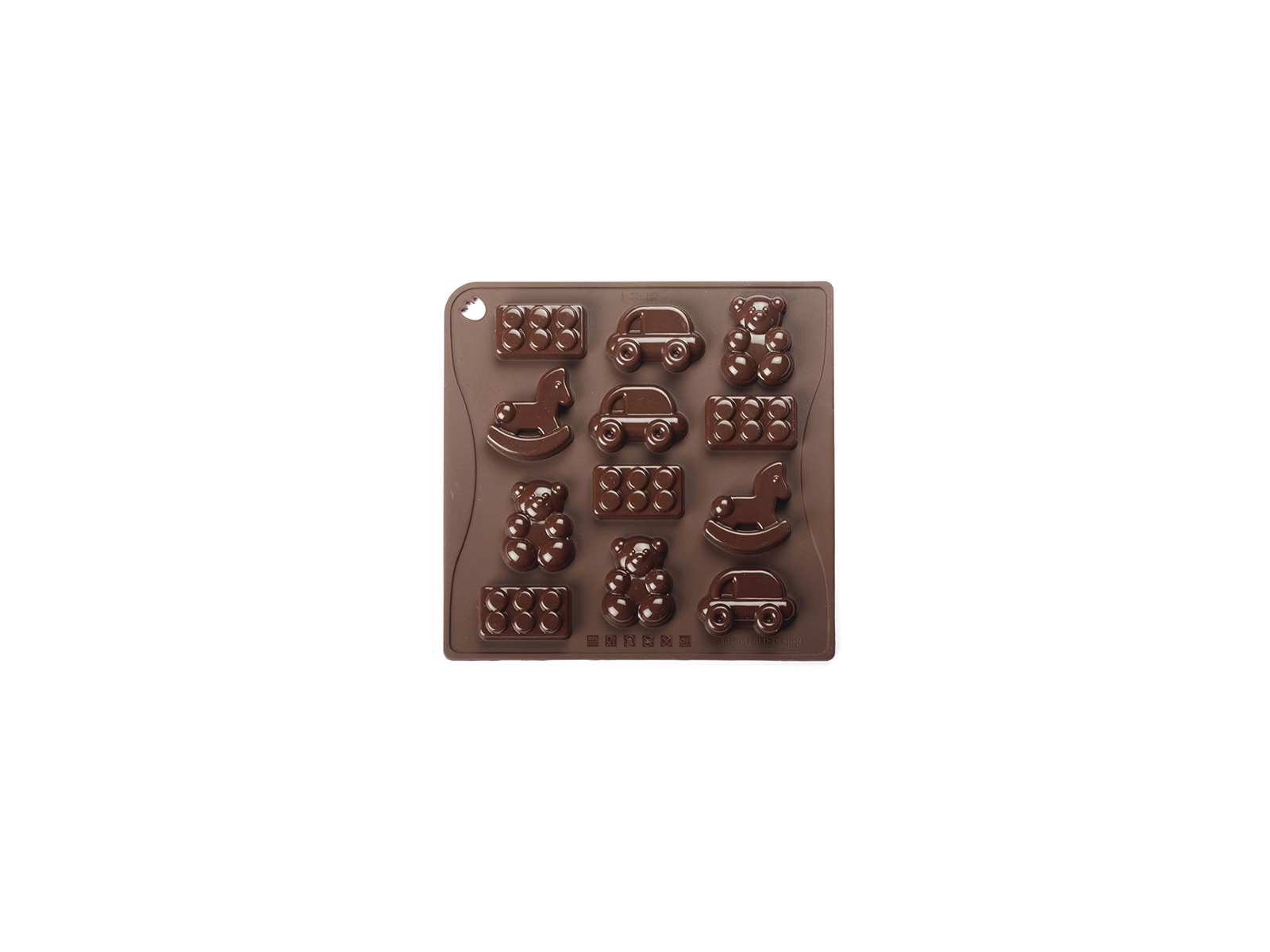 El molde de chocolate Pavoni Toys en silicona marrón te permite crear 12 chocolates detallados con un encantador tema de juguetes. El molde está fabricado en silicona flexible que soporta temperaturas de -40°C a +230°C, lo que lo hace apto tanto para chocolate como para repostería y gelatina. Con unas dimensiones compactas de 180x175x15 mm, es fácil de manejar y almacenar.