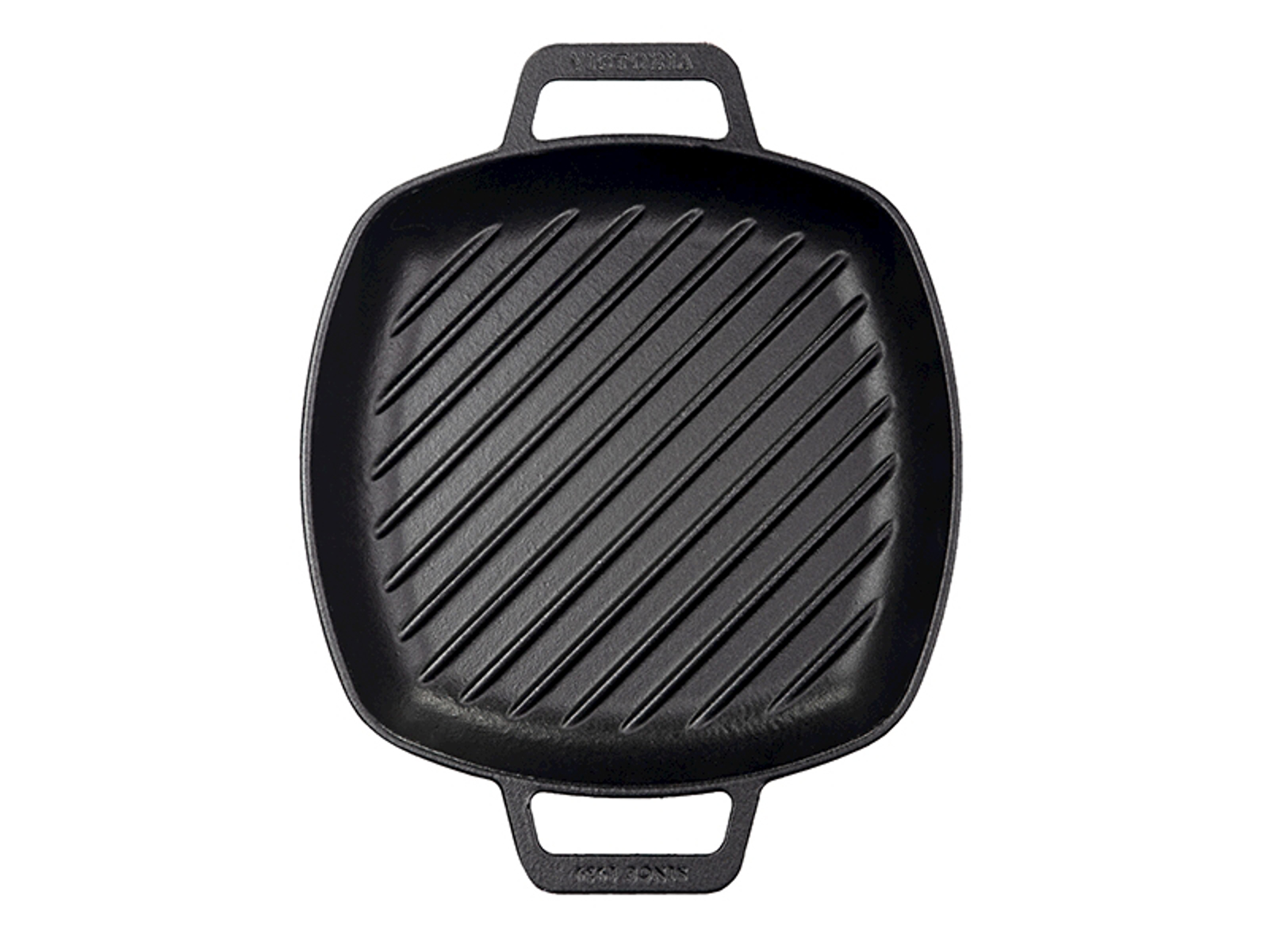 La sartén grill mide 26x26 cm, lo que ofrece una buena superficie de cocción para platos familiares y porciones más pequeñas. Con un peso de 2,3 kg, obtienes la estabilidad que caracteriza al hierro fundido de calidad. La forma cuadrada maximiza el uso del espacio en la cocina, y las características marcas de parrilla aseguran que la grasa y los líquidos se escurran de los alimentos durante la cocción.