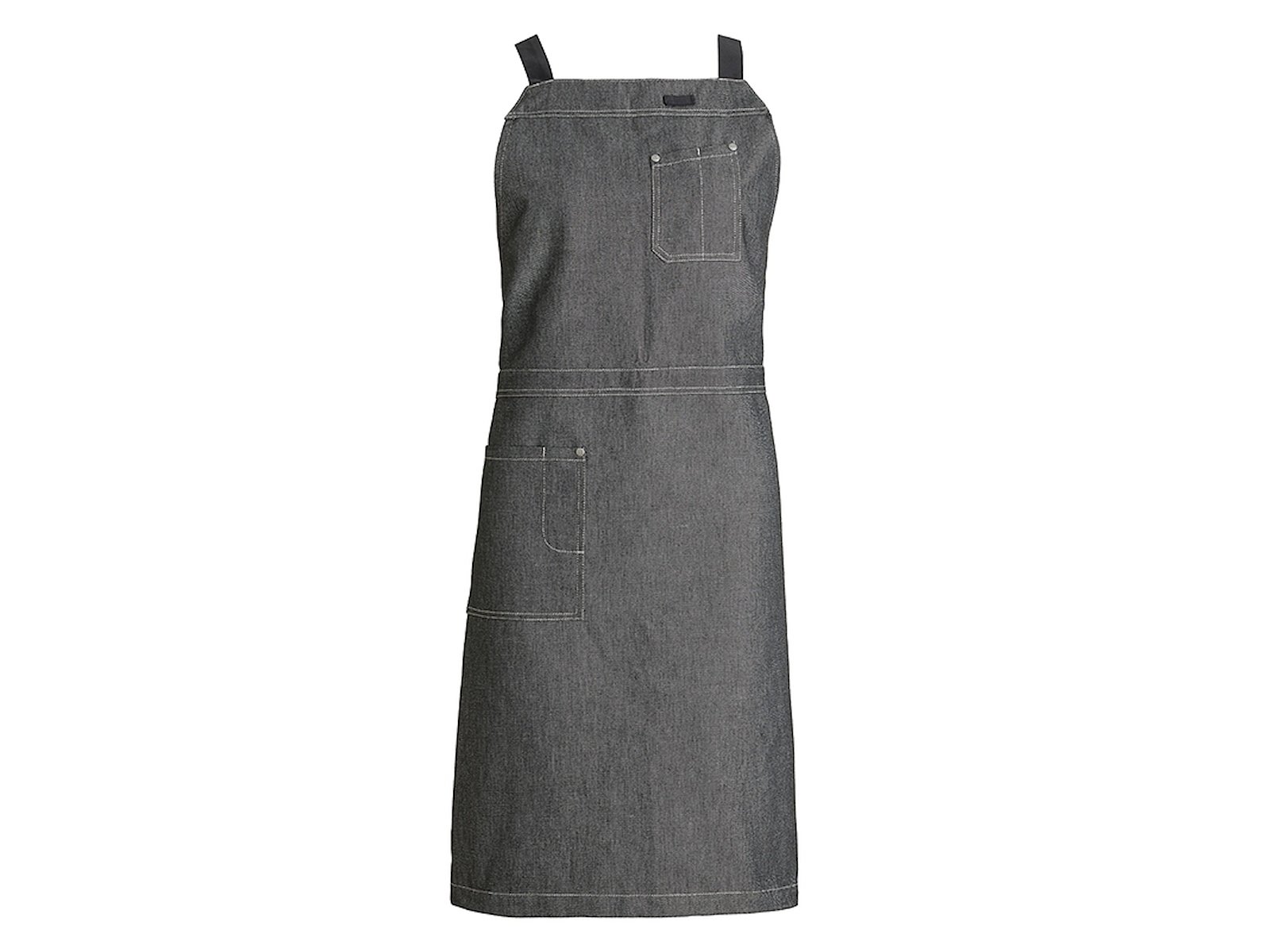 El delantal tiene una longitud que proporciona una buena cobertura y un ancho que asegura protección al cocinar y servir. El color gris ofrece un aspecto elegante que encaja bien tanto en ambientes de cocina modernos como clásicos. El diseño de cruce también significa que el delantal es fácil de poner y quitar, lo cual es práctico en entornos de trabajo ocupados.