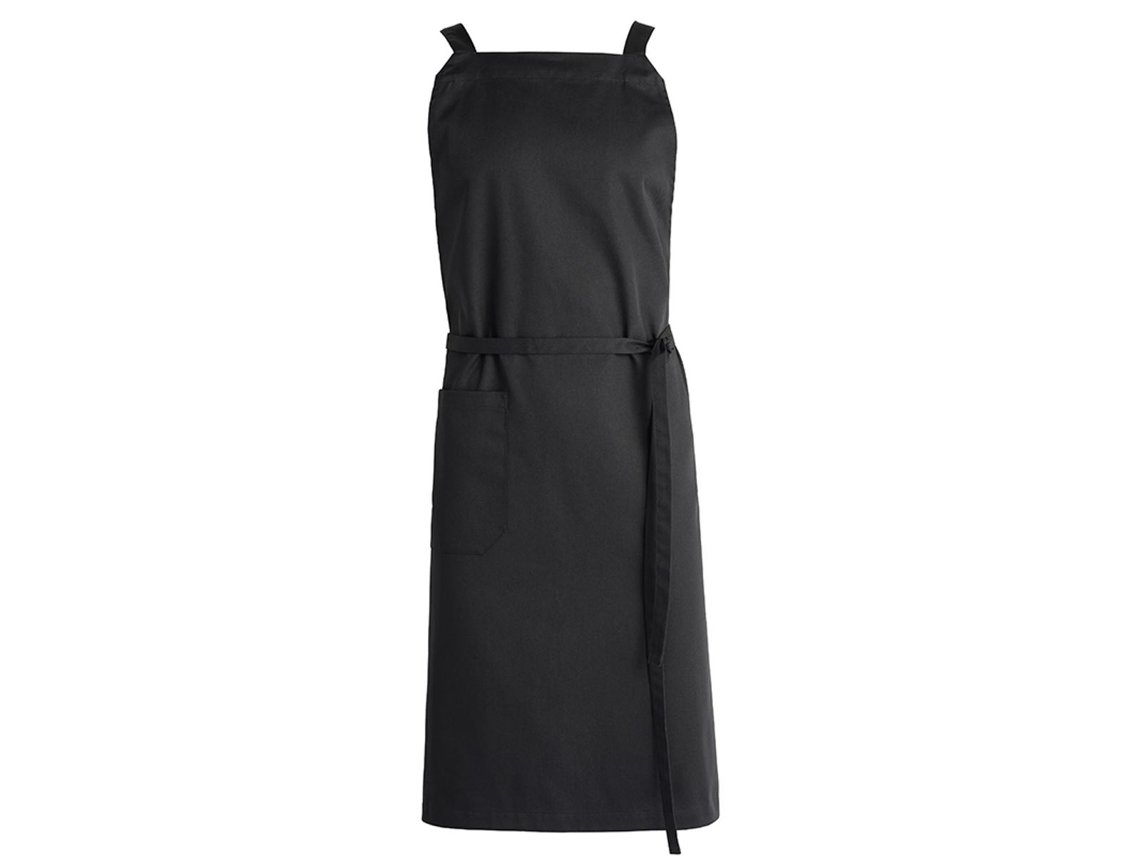 El delantal está fabricado en una mezcla de poliéster/algodón resistente, teñido en masa con tecnología de vat dye para mantener el color negro por más tiempo. El material está certificado según la norma OEKO-TEX® STANDARD 100, lo que garantiza que el producto está libre de sustancias nocivas. Con un peso de 400 gramos y dimensiones de 900 x 1000 mm, obtienes un delantal que es tanto robusto como cómodo de llevar. El delantal es apto para lavado a máquina a 60°C y es adecuado para lavado industrial (certificado EN ISO 15797), lo que lo hace perfecto para entornos profesionales con altos estándares de higiene.