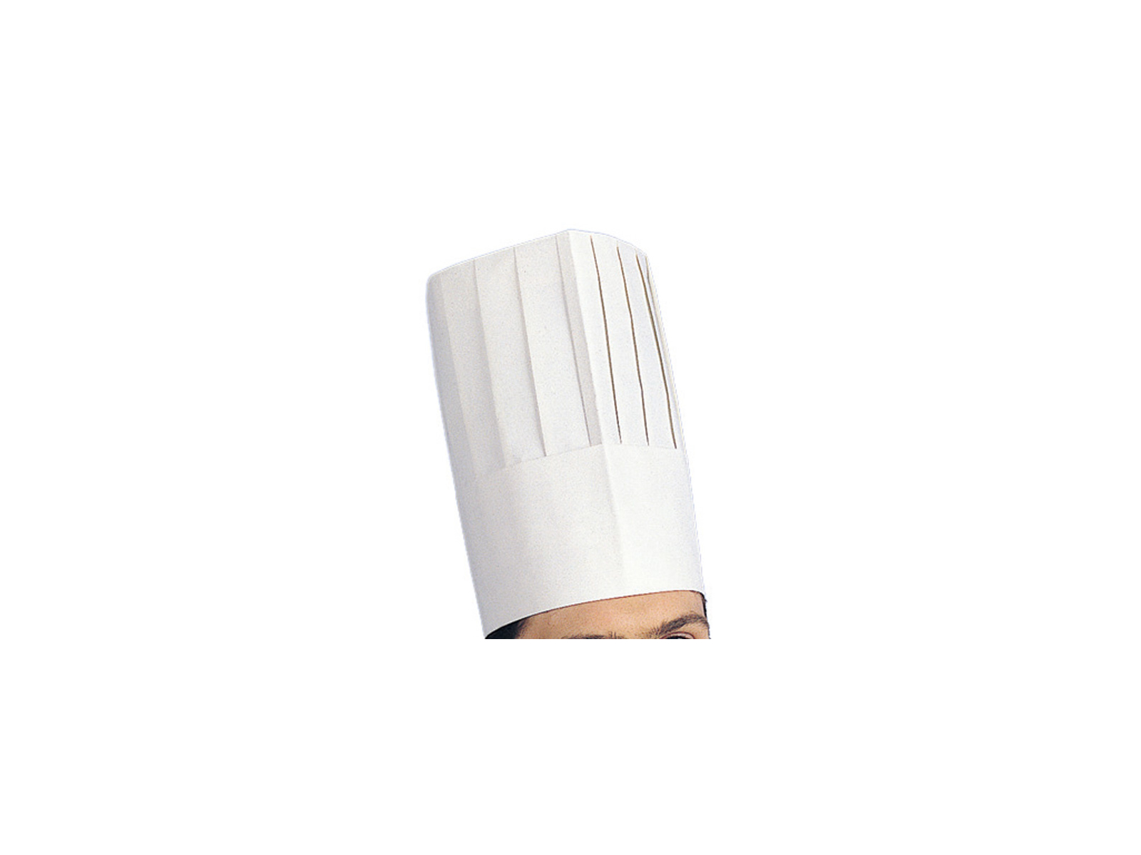 Este clásico gorro de chef de alta está fabricado en papel con efecto de fieltro y viene en un práctico paquete de 10 piezas. Con una altura de 25 cm, el gorro ofrece una apariencia profesional en la cocina. Está equipado con una banda absorbente de sudor y una corona perforada, lo que garantiza comodidad durante su uso.