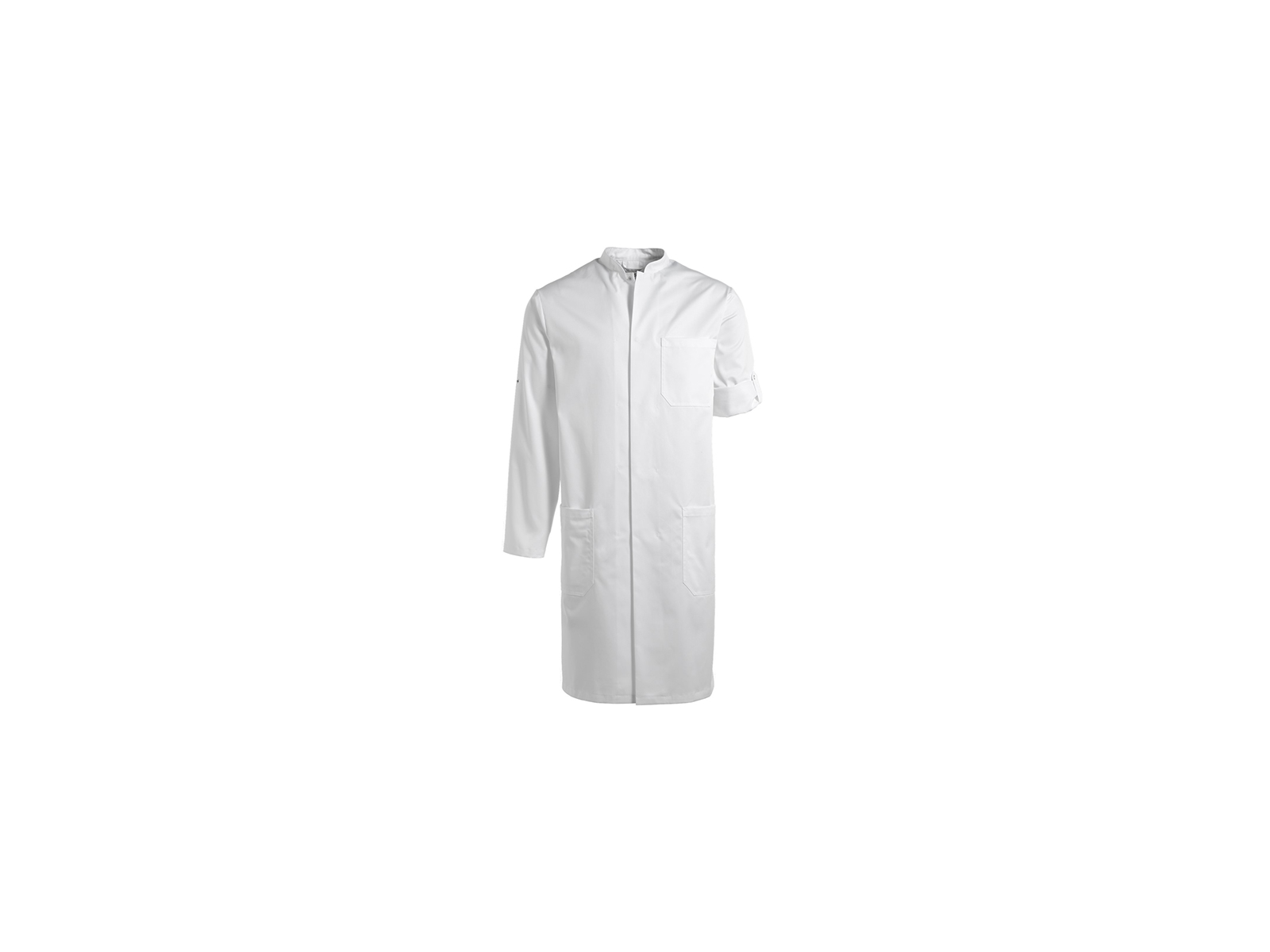 Este funcional batín blanco de Kentaur combina durabilidad y comodidad en una mezcla de 50% poliéster y 50% algodón con un peso de 300 gramos. El batín está disponible en talla 4XL y cuenta con detalles prácticos como una espalda ajustable y puños regulables, un bolsillo en el pecho y dos bolsillos en las caderas, uno de los cuales tiene un compartimento interior separado para el teléfono móvil. Ideal para personal de salud, laboratoristas, personal de limpieza y otros profesionales que requieren ropa de trabajo práctica y profesional.