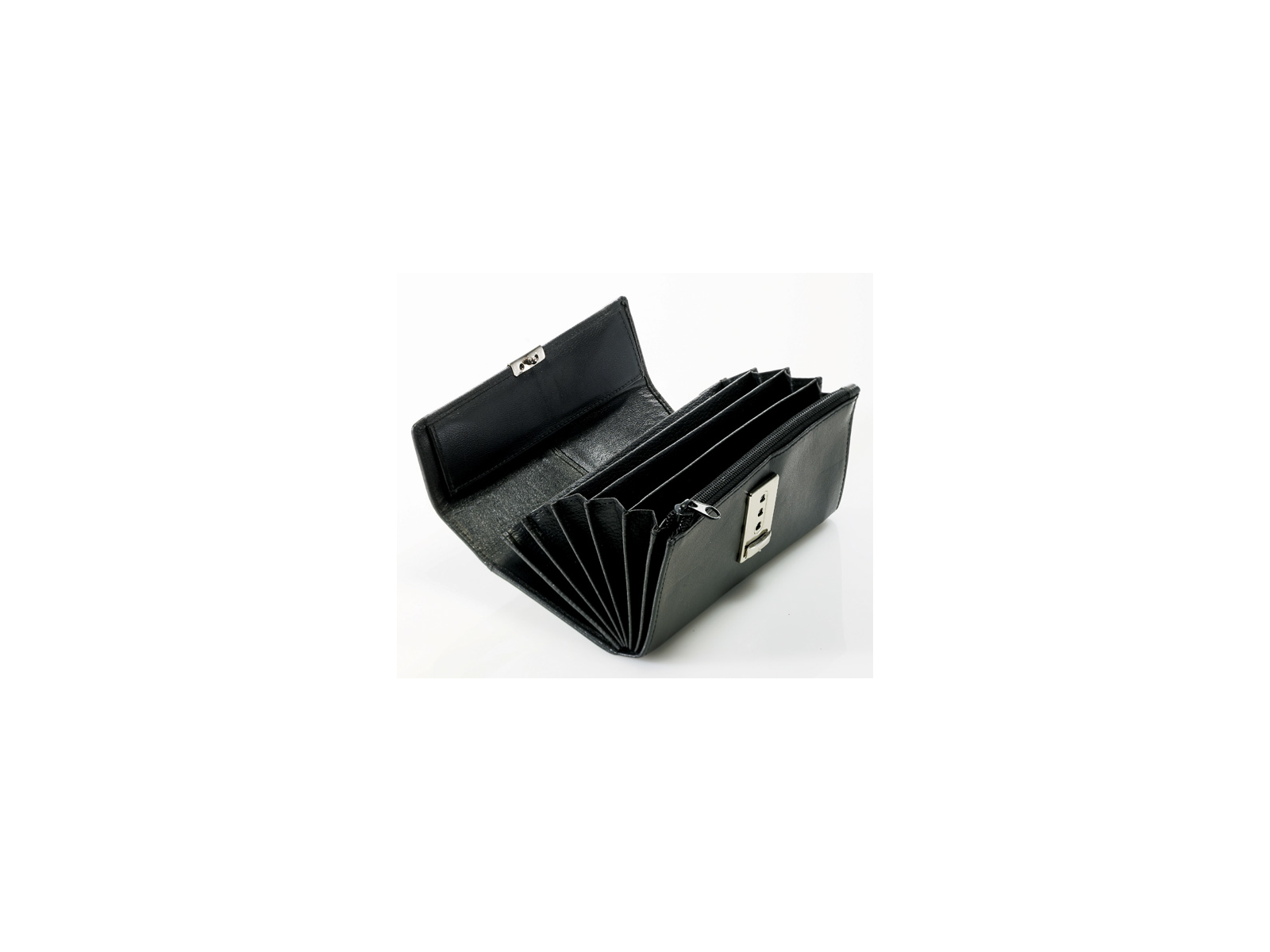 Con el cierre metálico ajustable de tres posiciones, puedes adaptar la billetera según la cantidad de contenido, manteniendo tus pertenencias seguras. El color negro no solo es atemporal y profesional, sino también práctico, ya que no muestra fácilmente el desgaste y la suciedad del uso diario. Con un peso de 205 gramos, la billetera es sólida sin ser pesada de llevar durante un largo día de trabajo.