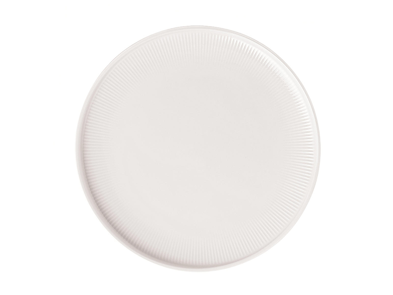 Este plato de 320 mm de la serie Afina de Villeroy & Boch está fabricado en porcelana premium de un blanco brillante. Con su elegante patrón en relieve y su moderna forma de coupé con borde elevado, crea un fascinante efecto de sombra que hace que el plato parezca "flotar".