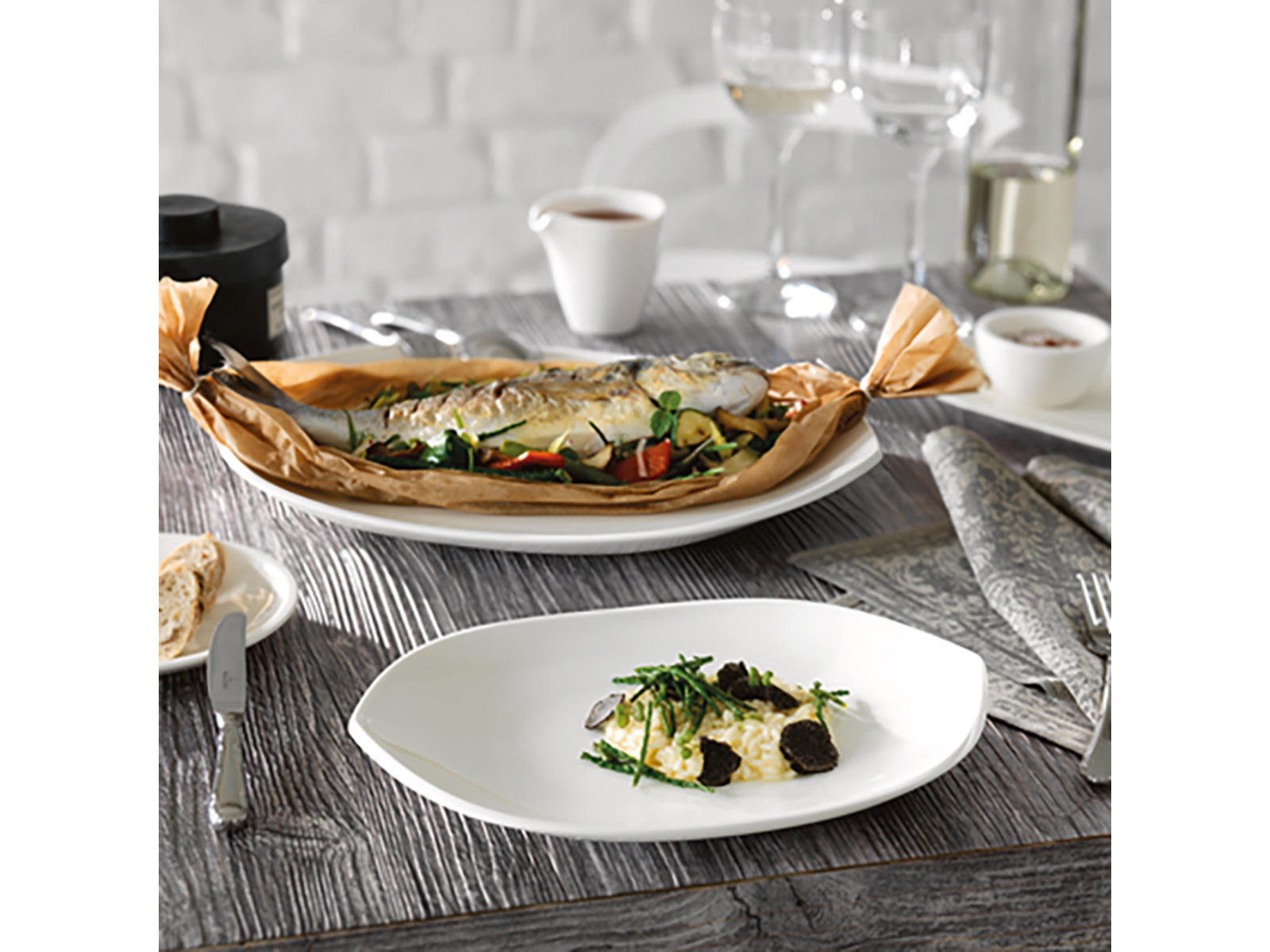Los bordes planos característicos le dan al cuenco una expresión moderna, mientras que su diseño sencillo asegura que se integre en cualquier mesa. La combinación de porcelana premium con materiales naturales como madera, pizarra y corcho en la serie Artesano crea un equilibrio armónico que realza tus presentaciones de la mejor manera. Este cuenco permite crear un estilo coherente, ya sea que tu decoración sea rústica o moderna.