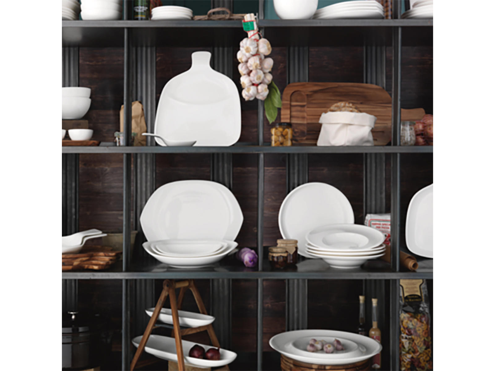 La porcelana de primera calidad del cuenco garantiza durabilidad en el uso diario y mantiene su brillo blanco incluso después de muchos años de uso. Los característicos bordes planos le dan al cuenco una expresión distintiva que lo separa de los cuencos de servicio comunes. Esta combinación de material de calidad y diseño bien pensado significa que el cuenco no solo es funcional, sino que también aporta un elemento elegante a tu presentación.