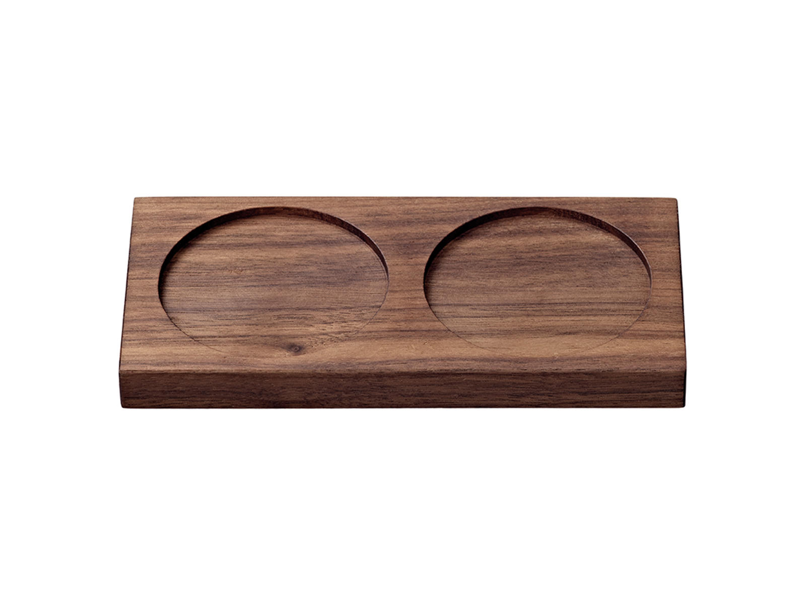 La madera de nogal le da a la bandeja un brillo cálido y natural, además de una expresión exclusiva que se adapta a la mayoría de las decoraciones de cocina. Las propiedades naturales de la madera hacen que la bandeja sea resistente al uso diario y le otorgan carácter con el tiempo. La simple forma circular de 15 cm de diámetro es lo suficientemente compacta para no ocupar espacio innecesario, pero lo suficientemente amplia para albergar molinillos de sal y pimienta estándar. La estructura natural de la madera asegura que cada bandeja tenga su propia expresión única.