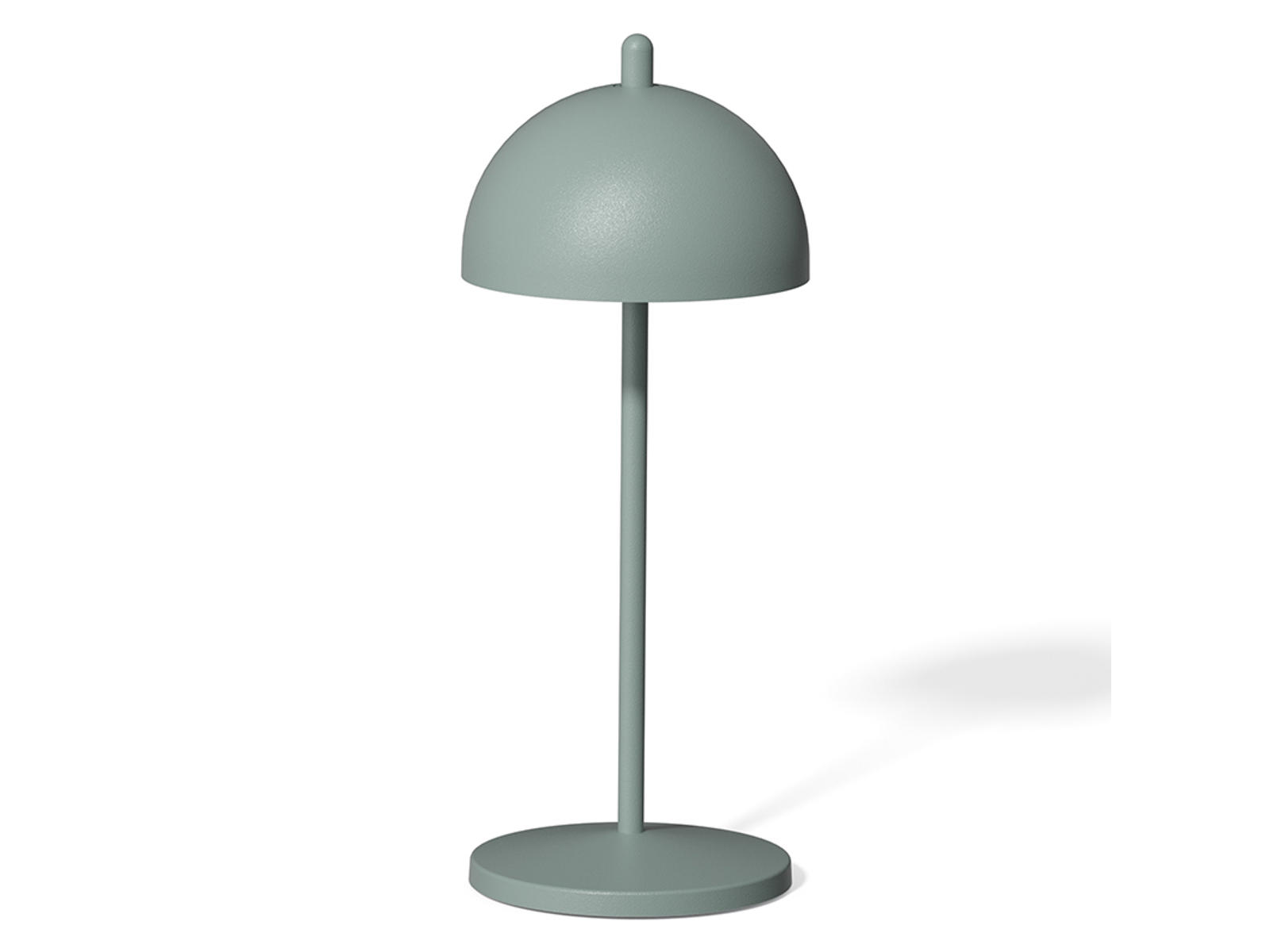 La lámpara mide 198 mm de altura con un diámetro de 80 mm. Está fabricada en aluminio con una superficie fresca en verde menta, que le da un aspecto moderno. La fuente de alimentación proviene de una batería incorporada de 3,7 voltios que se puede recargar fácilmente. Su tamaño compacto la hace fácil de mover y colocar exactamente donde se necesite.