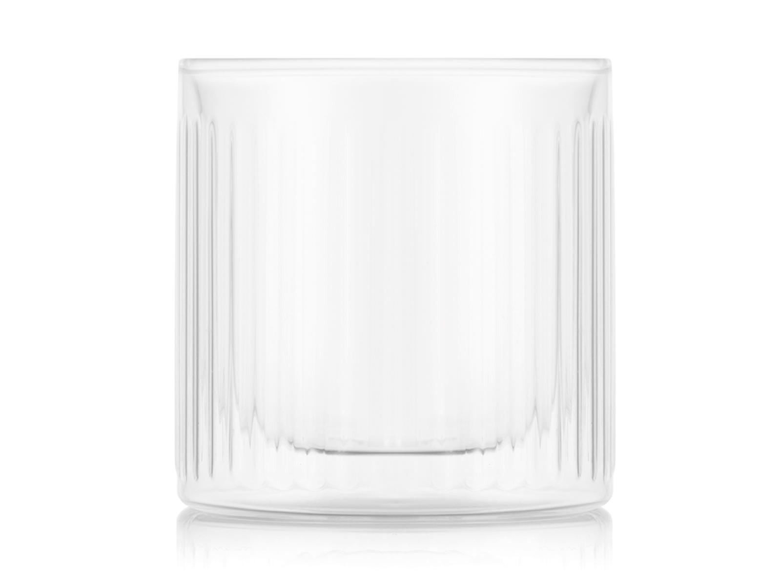 El vidrio de borosilicato hace que estos vasos sean especialmente resistentes a los cambios de temperatura y al uso diario. Son aptos para lavavajillas, lo que facilita el mantenimiento diario. La estructura acanalada no solo proporciona un diseño visualmente interesante, sino también un buen agarre del vaso. Con una capacidad de 30 cl, los vasos son lo suficientemente versátiles para diversas bebidas, desde cócteles hasta café, té o bebidas de postre.