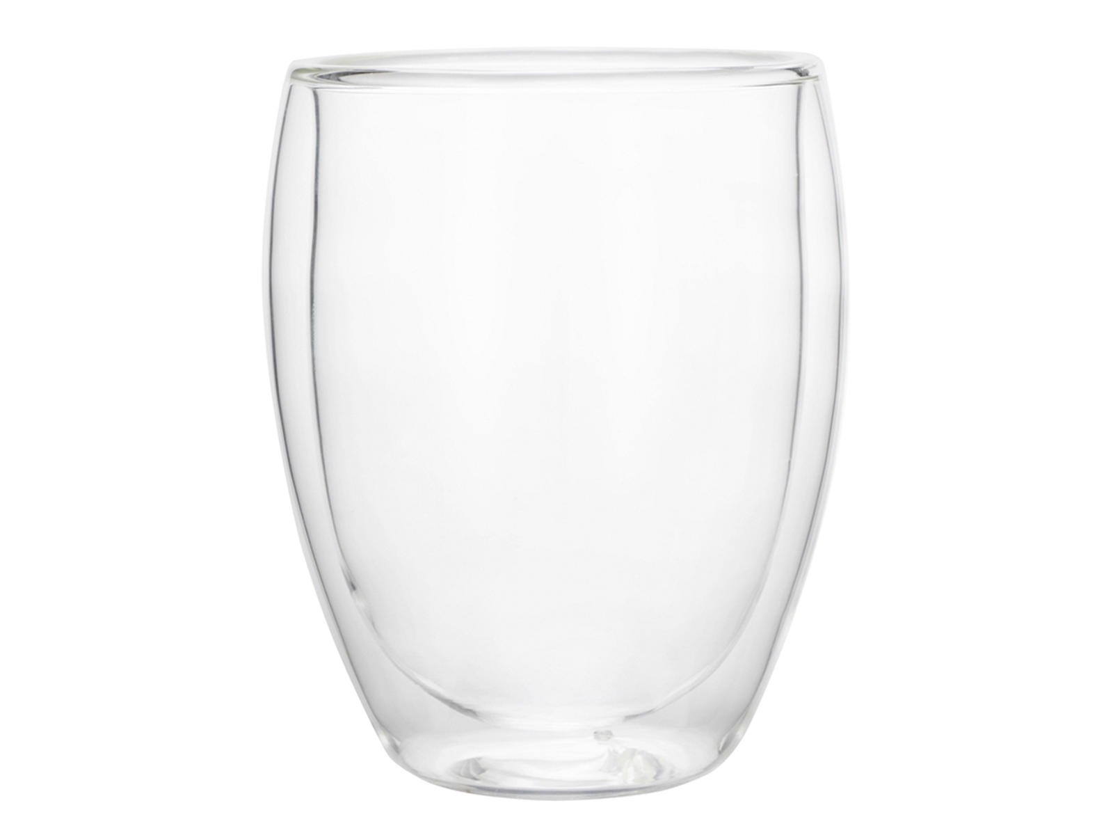 Cada set incluye 2 vasos de doble pared con una capacidad de 350 ml. Tienen un diámetro de 11,5 cm y una altura de 12,5 cm, lo que les da un buen tamaño para diferentes tipos de bebidas. El material es vidrio de borosilicato de primera calidad, conocido por su durabilidad y propiedades térmicas. Los vasos son parte de la serie Curved de WAS, caracterizada por su elegante diseño curvado.