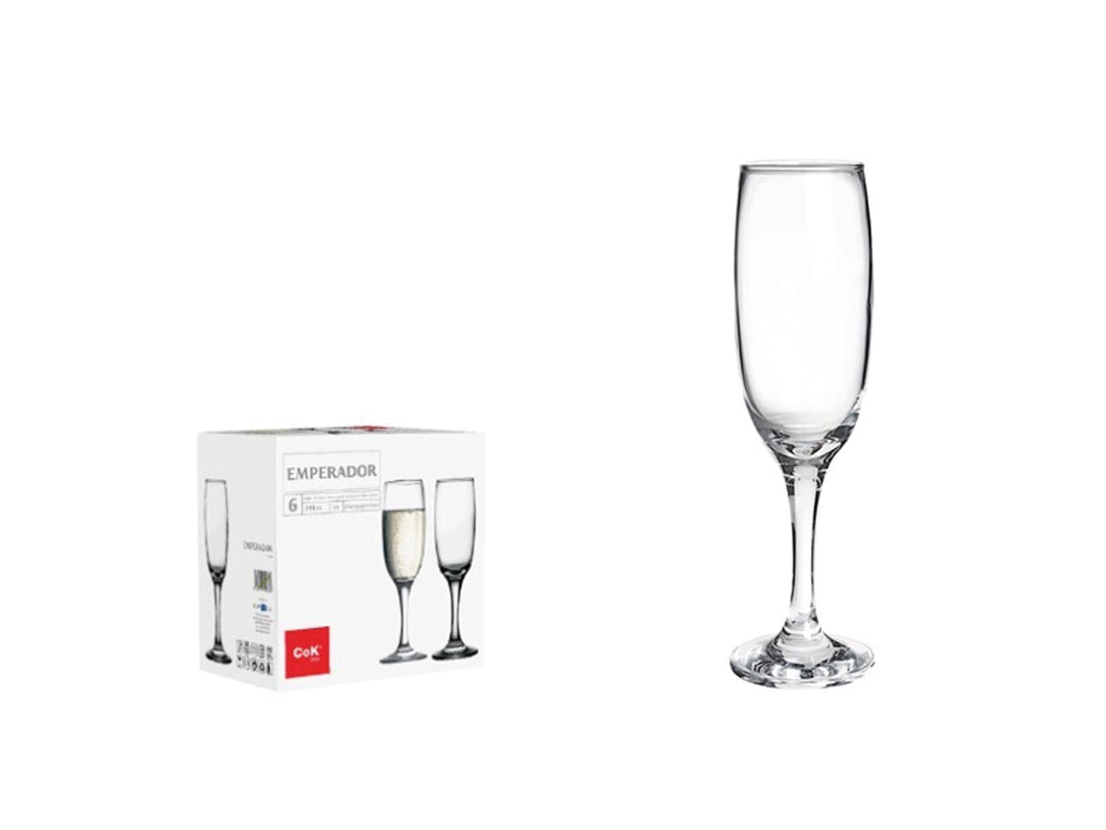 La copa de champán Emperador tiene una capacidad de 21,5 cl, una altura de 211 mm y un diámetro de 63 mm. Pesa 201 gramos y está hecha de vidrio de calidad duradero, apto para lavavajillas. Las dimensiones de la copa están cuidadosamente calibradas para ofrecer el mejor equilibrio entre estética y funcionalidad.