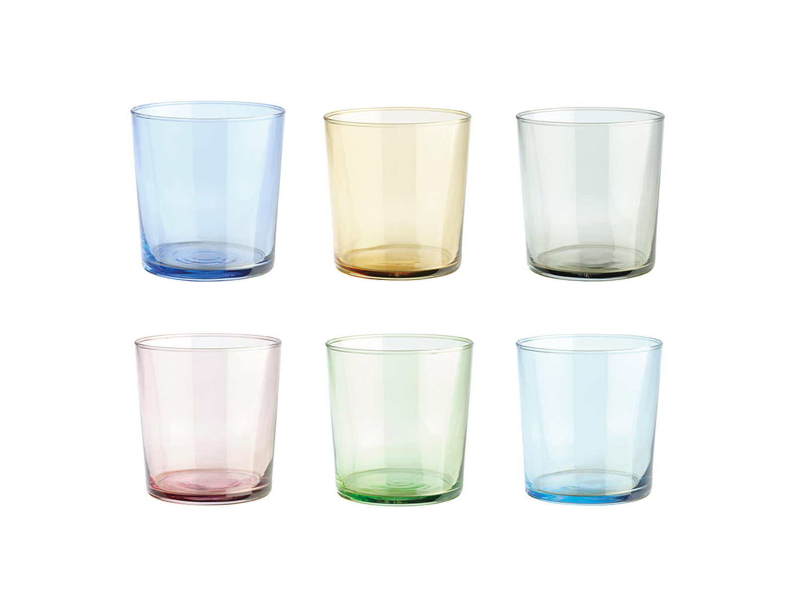 El set incluye 6 vasos en diferentes colores que proporcionan una hermosa combinación de colores para la mesa.