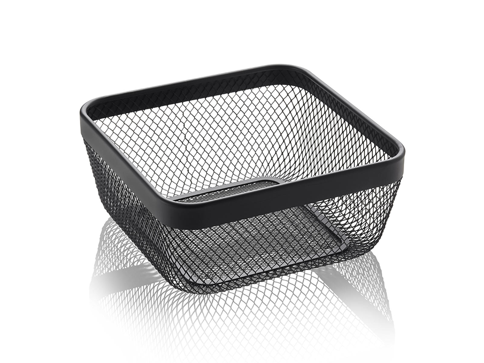 Cesta de malla negra con diseño elegante y almacenamiento práctico