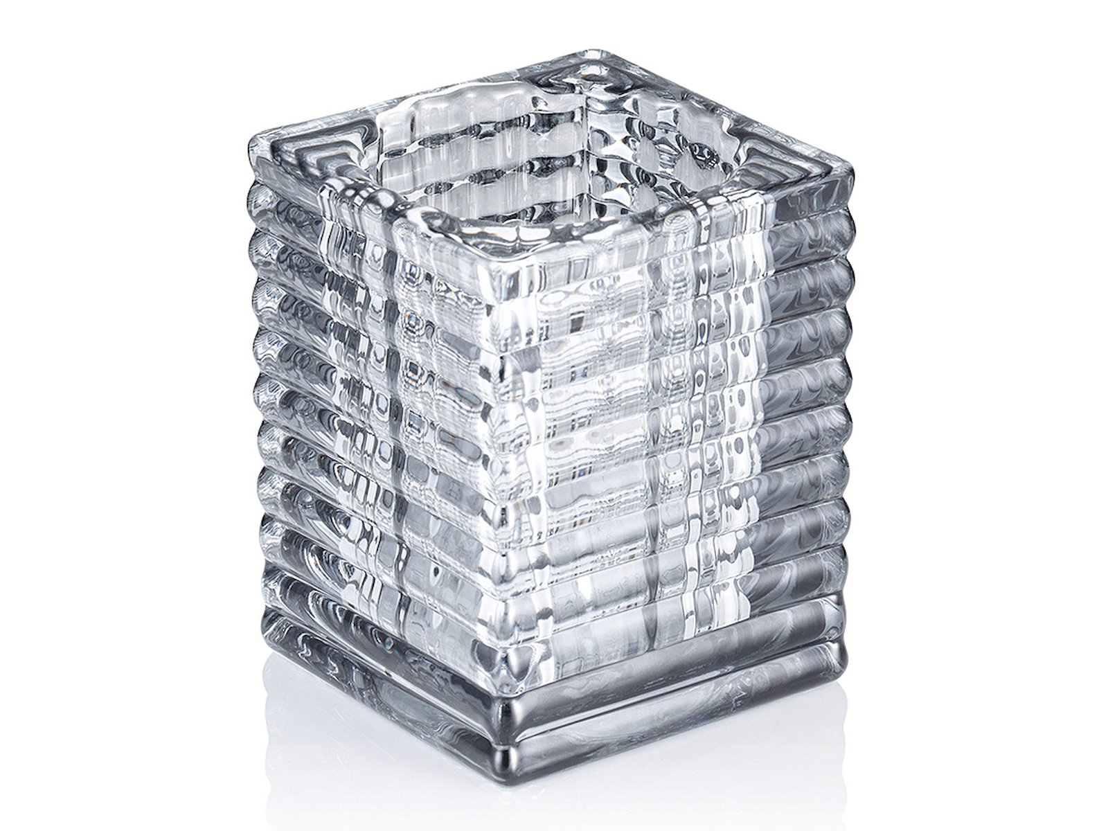 La forma cúbica del portavelas garantiza una buena estabilidad, evitando accidentes por volcamientos. Además, el cristal ahumado protege contra la combustión rápida al reducir el flujo de aire alrededor de la llama. Su tamaño compacto facilita su colocación incluso en superficies pequeñas, mientras que su diseño simple lo convierte en un elemento decorativo discreto pero efectivo, que puede utilizarse durante todo el año, tanto en ocasiones cotidianas como festivas.