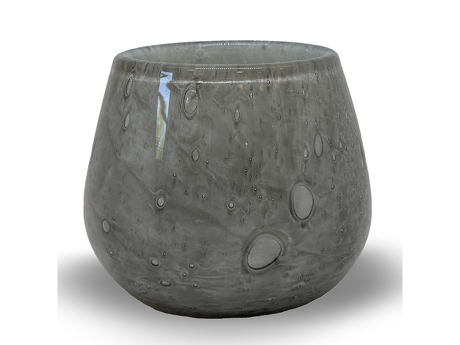 El portavelas Luna, fabricado en vidrio reciclado soplado a mano, combina funcionalidad y estética en un diseño atemporal. Con un diámetro de 12 cm y una altura de 10,5 cm, este portavelas de vidrio gris crea una atmósfera cálida y acogedora. El proceso de fabricación artesanal asegura que cada pieza tenga su propia expresión y patrón únicos.