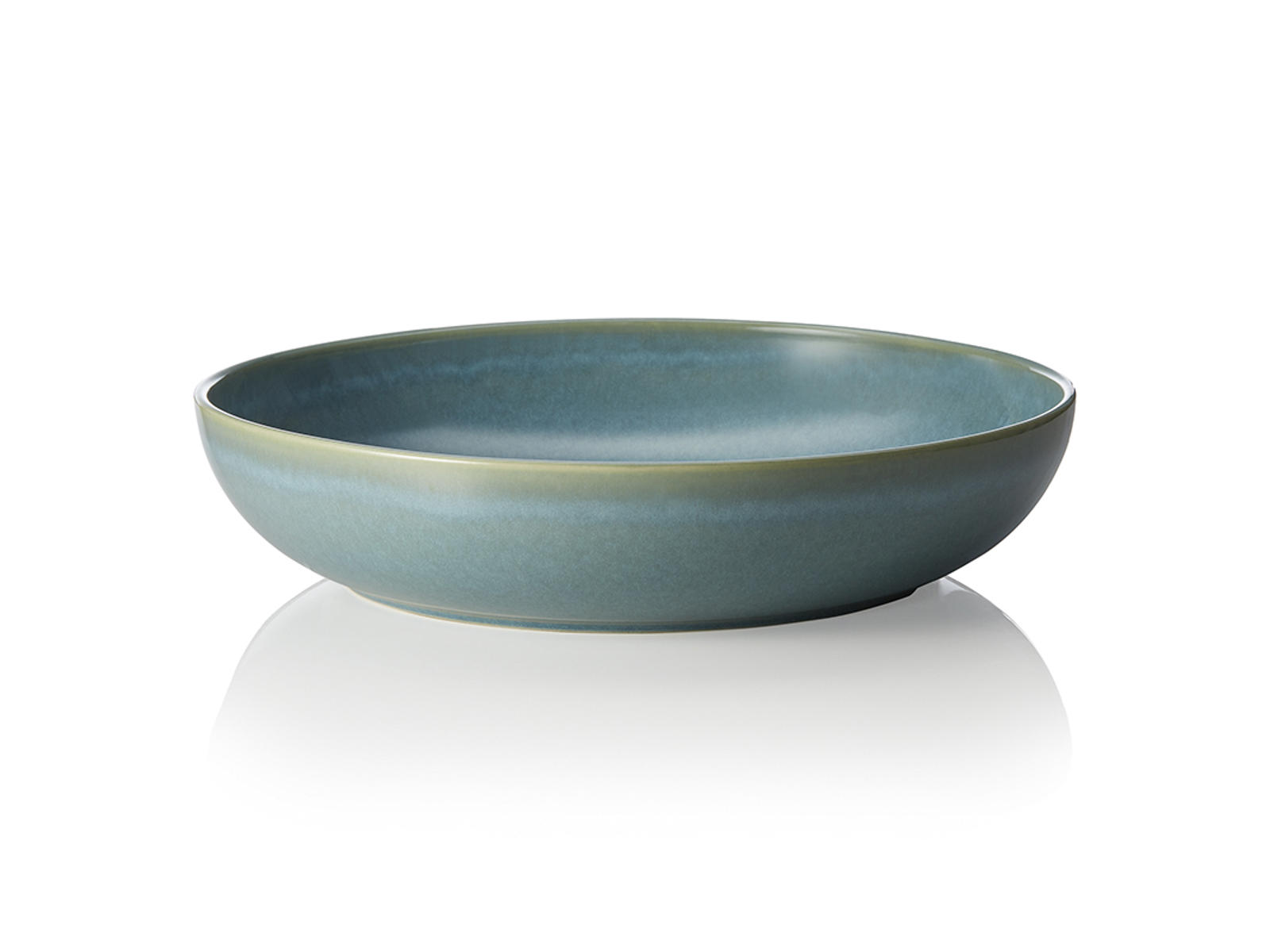 Este espacioso bol de servicio de cerámica de la serie One Myrtle Green de Rockzzero combina funcionalidad y estética de la mejor manera. Con un diámetro de 33 cm, una altura de 7 cm y una capacidad de 3 litros, el bol ofrece suficiente espacio tanto para las comidas diarias como para ocasiones festivas. El característico esmalte verde-azulado aporta al mesa una expresión tranquila y natural.