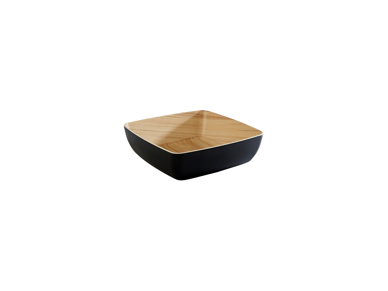 El cuenco mide 25 x 25 cm con una altura de 7,5 cm, lo que le proporciona una capacidad espaciosa de 2,65 litros. Pesa 700 gramos, lo que lo hace fácil de manejar y, al mismo tiempo, lo suficientemente estable para servir platos pesados. El color negro/beige con aspecto de madera ofrece una expresión natural y elegante que se adapta a muchos conceptos de servicio diferentes.