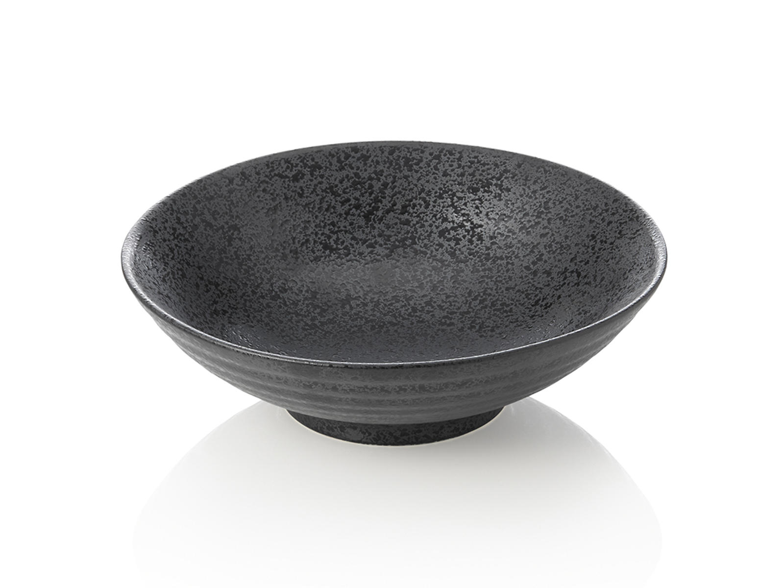 Este espacioso cuenco de la serie Maya combina funcionalidad con un diseño estiloso. Con un diámetro de 24,5 cm y una capacidad de 1 litro, ofrece un amplio espacio para servir tanto platos calientes como fríos. La porcelana negra con su textura característica crea un acabado exclusivo que realza la comida de manera atractiva.
