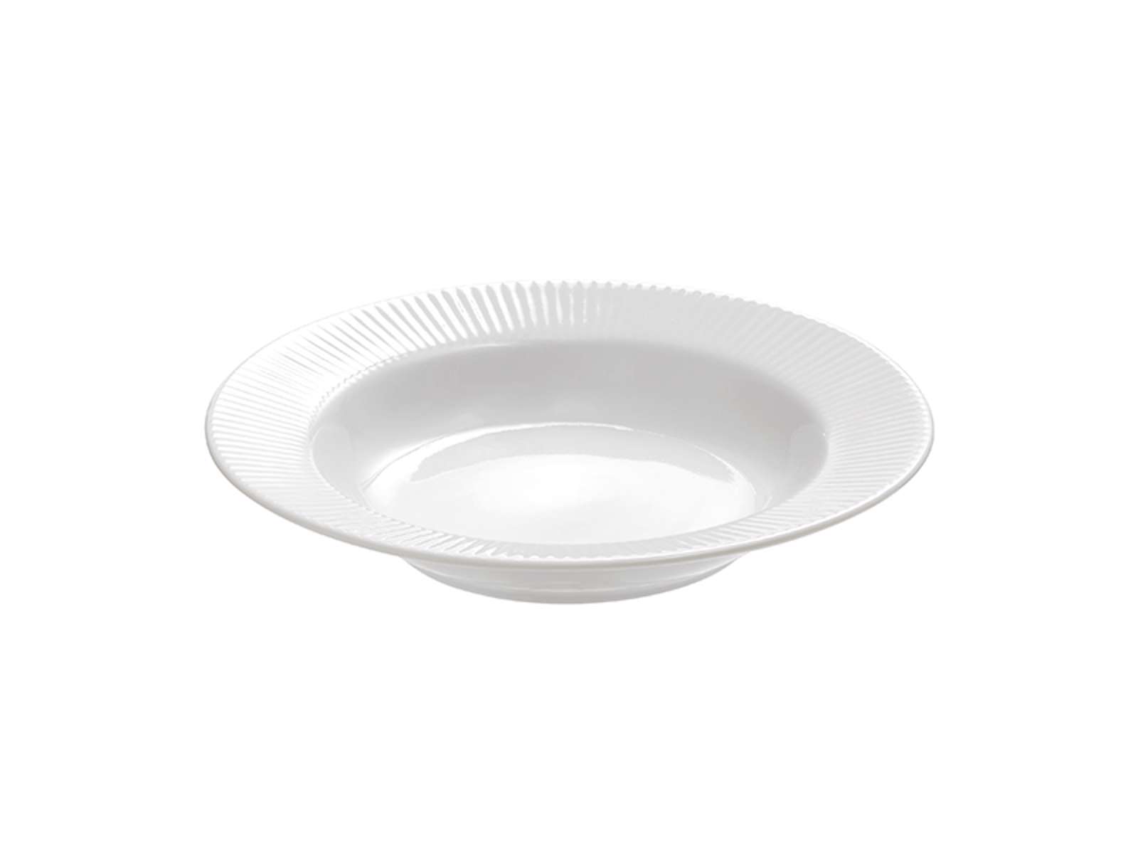 El plato profundo de 21 cm de diámetro ofrece un buen espacio para las comidas, sin ocupar demasiado en la mesa. Los detalles decorativos acanalados no solo crean una expresión visual interesante, sino que también proporcionan un buen agarre al plato. La porcelana está fabricada en calidad premium, asegurando durabilidad en el uso diario, mientras que su elegante color blanco se adapta a cualquier cocina y a cualquier tipo de mesa.