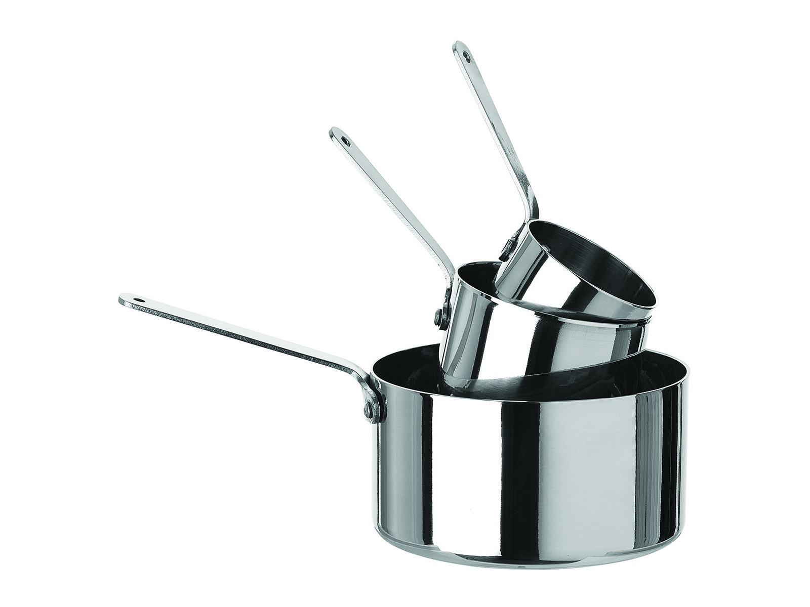 La cacerola tiene un diámetro de 70 mm y una altura de 45 mm, con una capacidad total de 14 cl. Pesa solo 120 gramos, lo que la hace fácil de manejar. El material es acero inoxidable de alta calidad, que asegura tanto durabilidad como una buena distribución del calor. Está diseñada para ser utilizada en todo tipo de fuentes de calor para máxima utilidad en cualquier cocina.