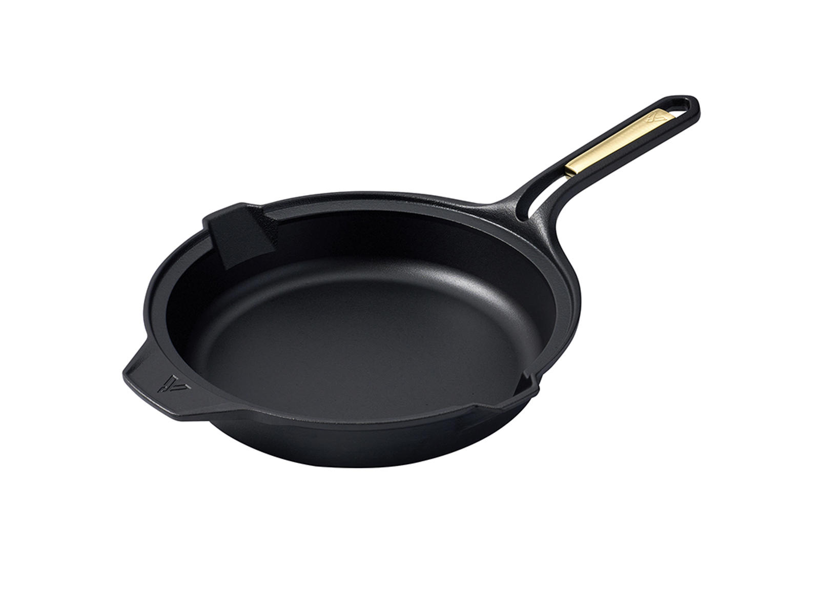 El mango esbelto con ventilaciones de aire y detalles en latón ha sido desarrollado para mantenerse más fresco durante la cocción. Su diseño ergonómico con forma elevada asegura un agarre estable, incluso al manejar platos pesados. Las prácticas boquillas de vertido en ambos lados permiten verter salsas o líquidos sobrantes sin derrames. La superficie texturizada de la sartén contribuye a una excelente distribución del calor, manteniendo la comida caliente por más tiempo.