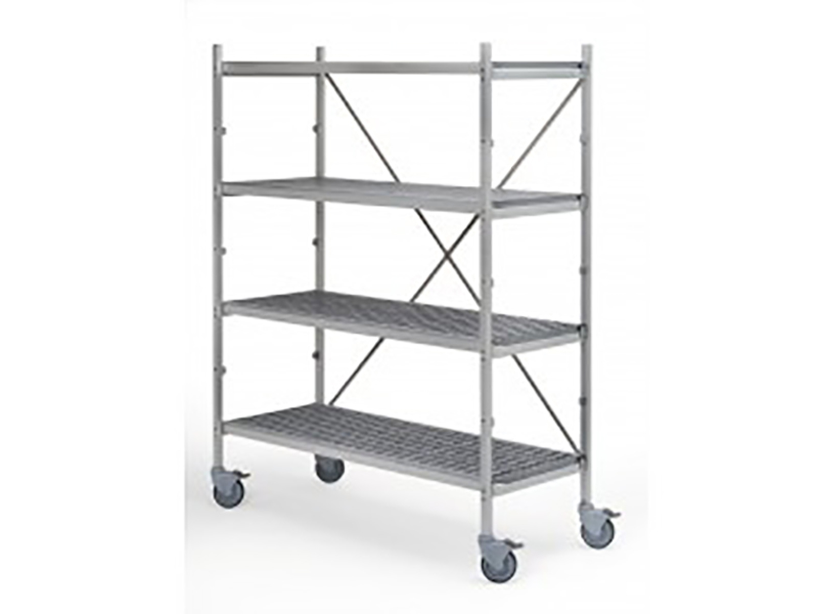Gracias a las ruedas integradas (Ø60 cm), la estantería se puede mover con facilidad según se requiera, lo que permite una disposición flexible de tu área de trabajo. El diseño modular de la estantería la hace adecuada para diferentes configuraciones, ya sea en forma de L, U o cualquier otra. Su color gris se integra discretamente en cualquier entorno profesional, mientras que la sólida construcción de aluminio garantiza una larga vida útil incluso con uso diario.