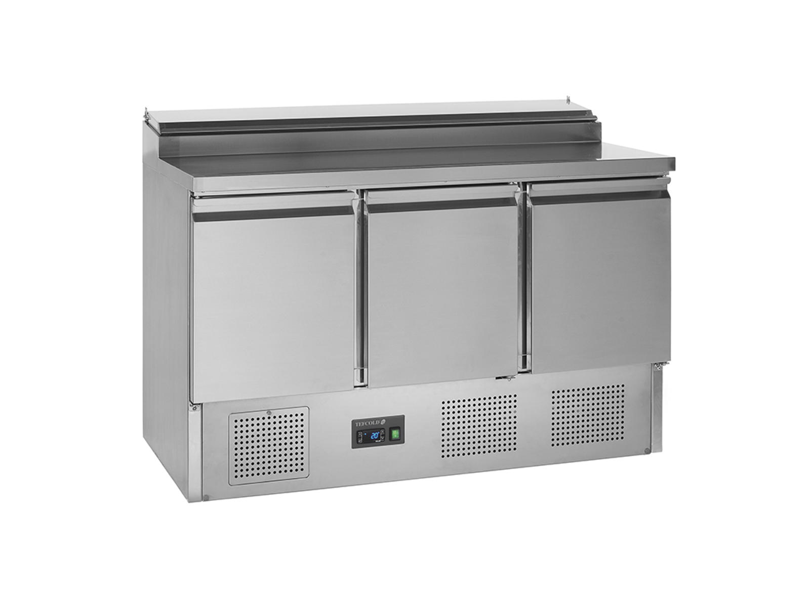 Este mostrador refrigerado profesional de Tefcold combina un práctico módulo de refrigeración para recipientes GN1/6 con dos amplios armarios. Construido en acero inoxidable con refrigeración asistida por ventilador, el modelo SS920 garantiza una temperatura uniforme y un fácil acceso a los ingredientes, al mismo tiempo que proporciona un buen espacio de trabajo.