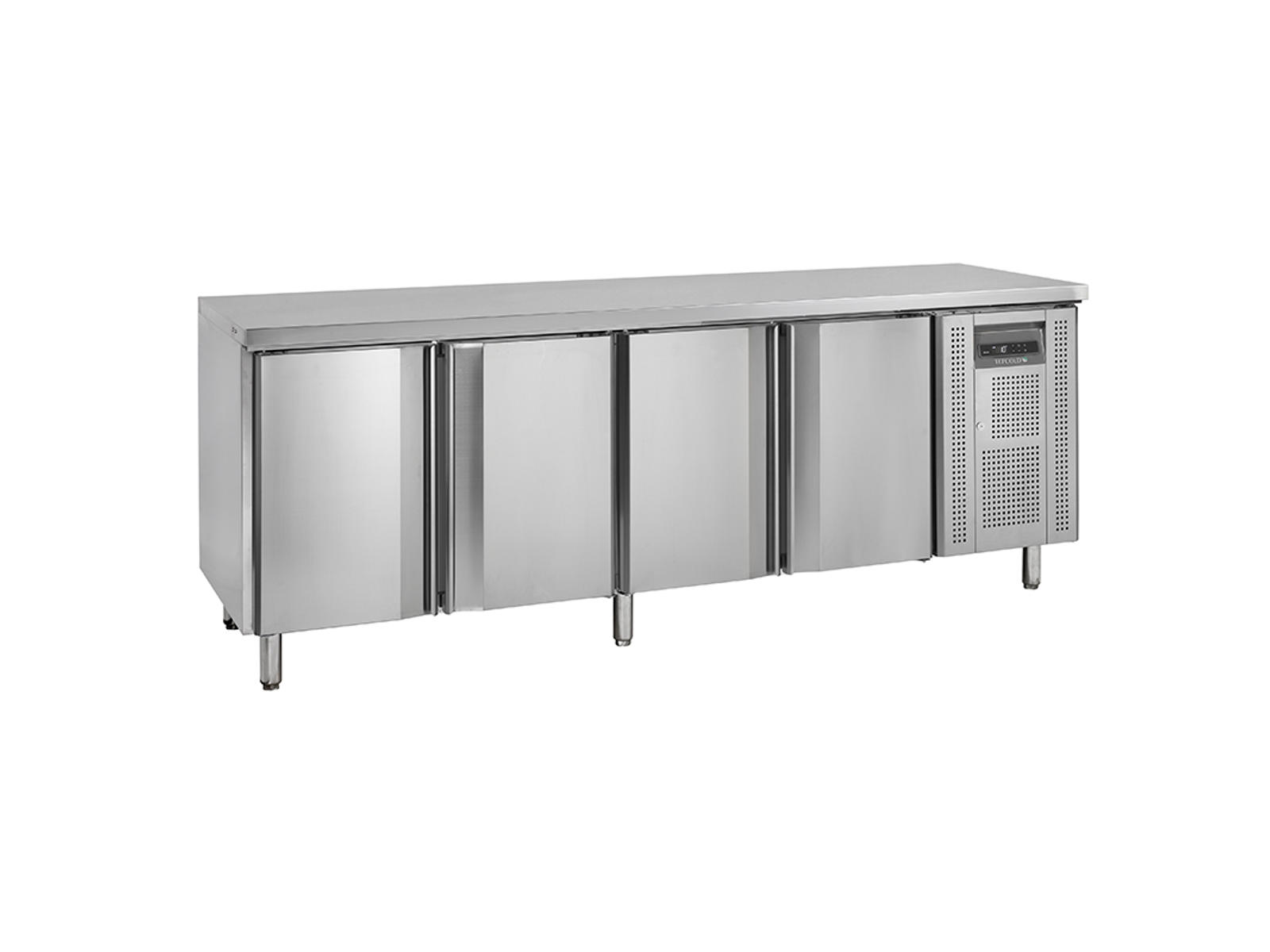 La construcción completa en acero inoxidable (SS304), tanto por dentro como por fuera, hace que este mostrador sea extremadamente resistente al desgaste diario y a la corrosión. Este material no solo garantiza una larga vida útil, sino que también facilita la limpieza de manera rápida y sencilla, un factor crucial en cocinas ocupadas donde la seguridad alimentaria es una prioridad. Las dos puertas de cierre automático minimizan las fluctuaciones de temperatura y reducen el consumo energético, mientras que las cuatro patas ajustables permiten adaptar el mostrador a tu entorno de trabajo.