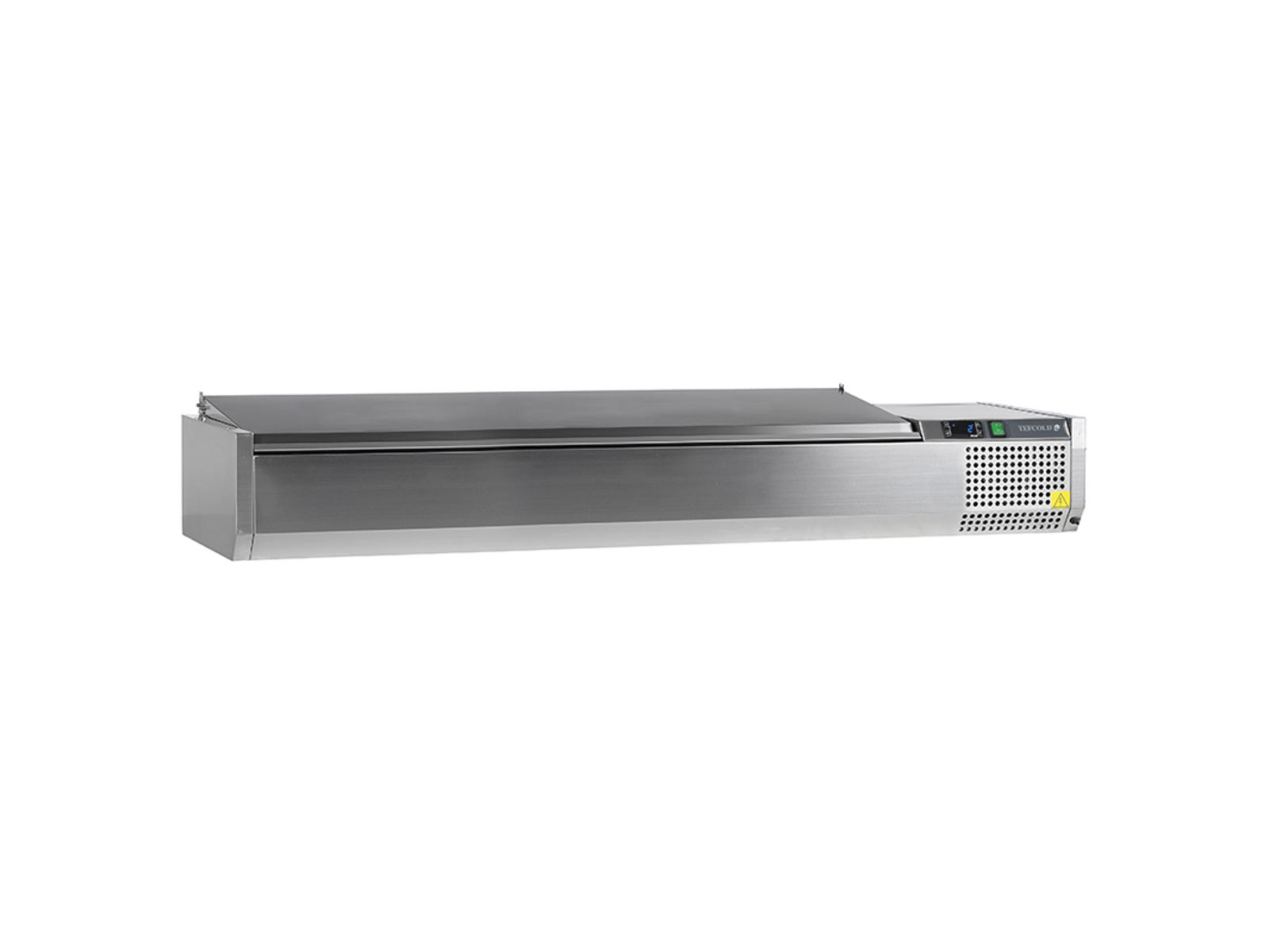 Este profesional expositor refrigerado Tefcold VK38-200 está diseñado para mantener los ingredientes frescos y visibles tanto para el personal como para los clientes. Con capacidad para 9 bandejas GN 1/3 y una cubierta de vidrio protector, la unidad combina un almacenamiento práctico con una presentación óptima en una robusta construcción de acero inoxidable.