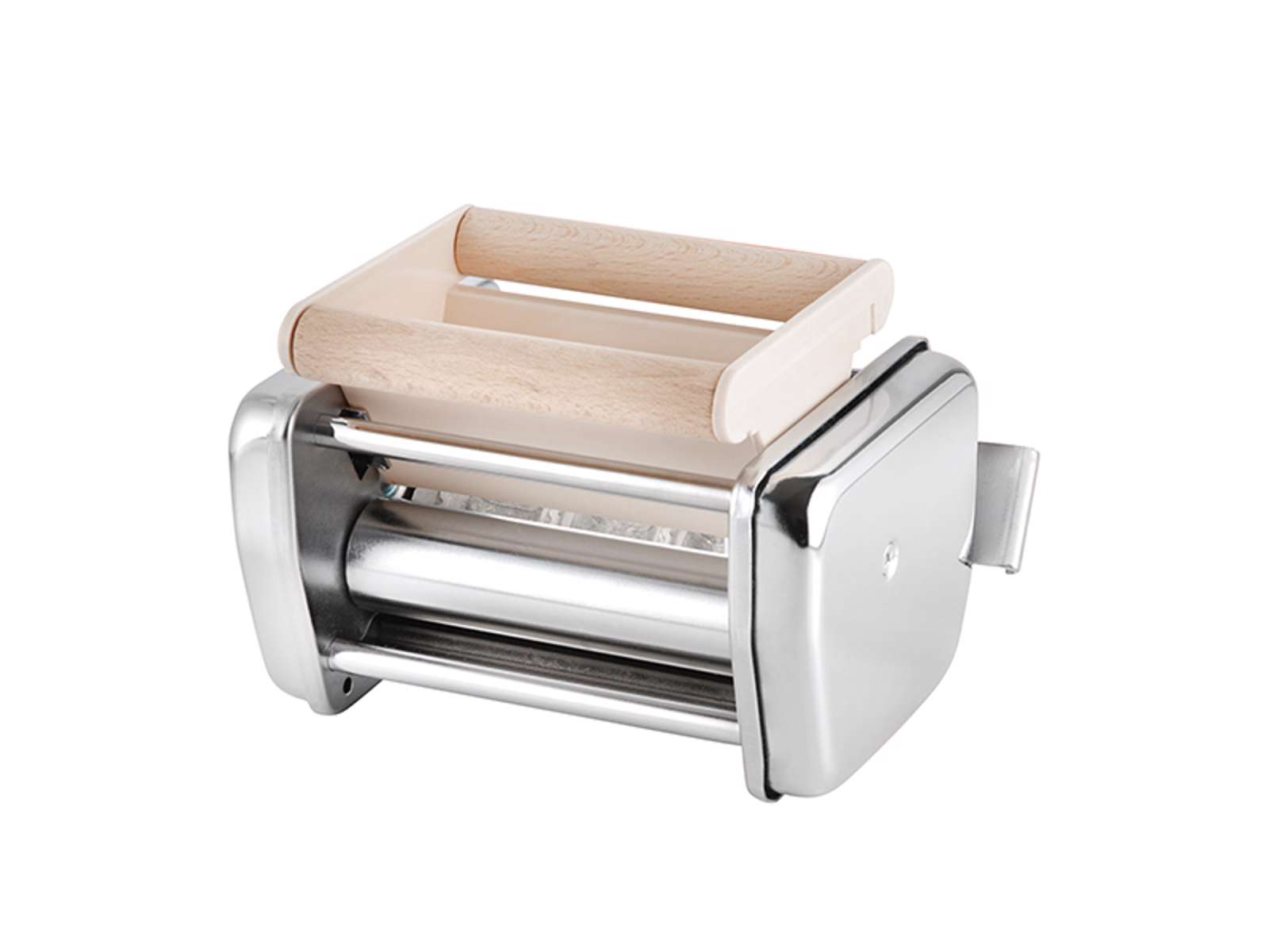 El accesorio para ravioli está fabricado específicamente para la máquina de pasta Imperia modelo SP150 y tiene un ancho de 44 mm. La construcción en acero inoxidable garantiza una larga durabilidad y una fácil limpieza, mientras que los componentes de madera ofrecen un agarre cómodo durante su uso. Cada ravioli tiene unas medidas de 5×5 cm, que es un tamaño clásico que permite un contenido generoso manteniendo la integridad de la pasta durante la cocción.