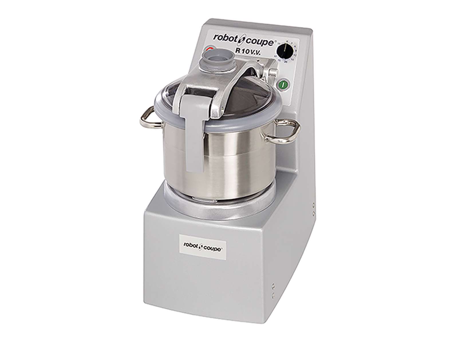 La Robot Coupe R10V.V es una licuadora profesional diseñada para grandes cocinas que requieren una cocción eficiente en grandes cantidades. Con un potente motor de 2600W y control de velocidad variable de 300-3500 revoluciones por minuto, esta robusta licuadora puede procesar todo tipo de ingredientes para obtener resultados homogéneos. Su espacioso tazón de acero inoxidable de 11,5 litros asegura capacidad para 50-200 porciones.