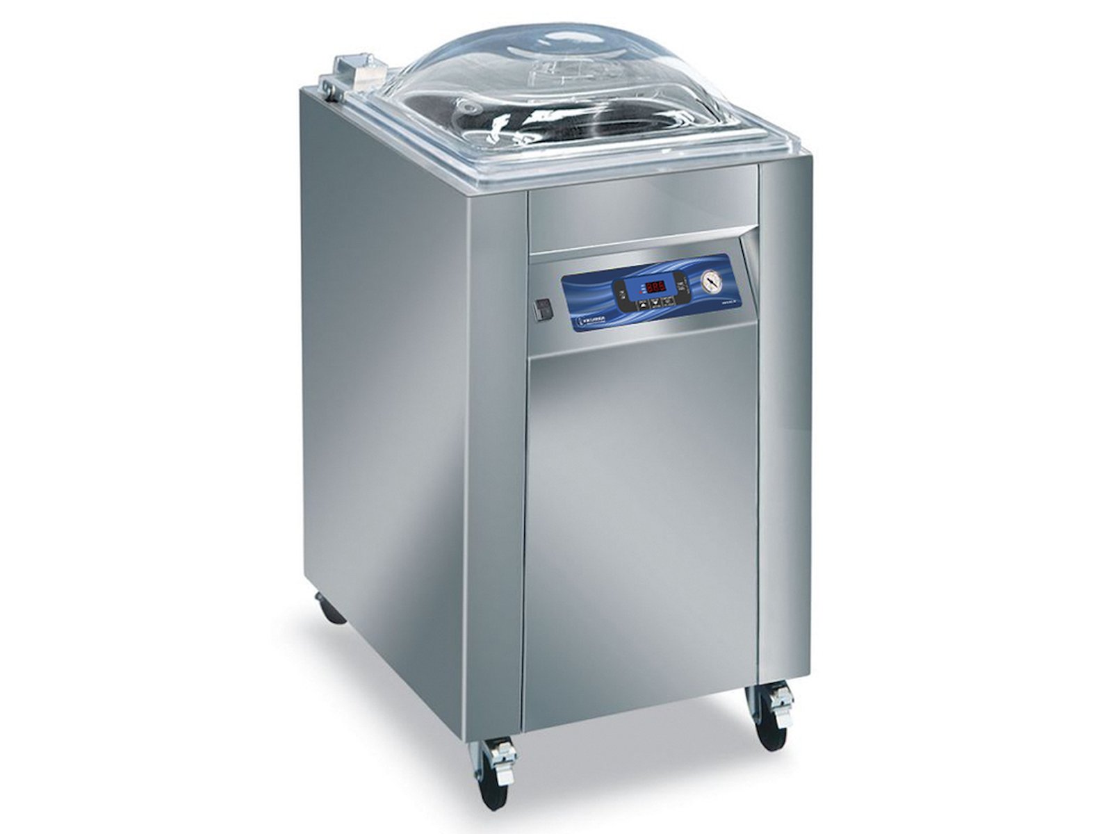 La envasadora al vacío Eco 50 Super de acero inoxidable es una solución profesional para un envasado al vacío eficiente de alimentos tanto sólidos como líquidos. Con su espaciosa cámara de 520x520x220mm y una potente bomba de vacío a base de aceite de 20/24m³/h, se asegura una extracción de aire completa y un sellado óptimo.