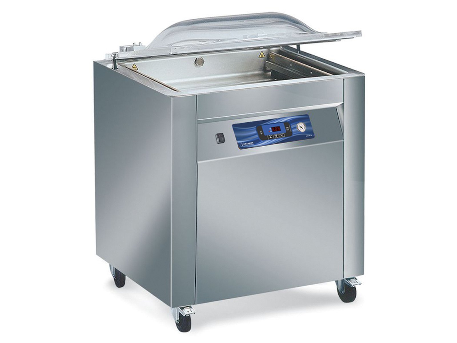 A pesar de su robusta construcción y un peso de 200 kg, la máquina está equipada con ruedas que la hacen móvil y flexible en tu cocina o área de producción. Su estructura de acero inoxidable resiste la limpieza diaria y las duras condiciones de las cocinas profesionales. El panel de control digital permite un control preciso del proceso de vacío, asegurando resultados consistentes cada vez.