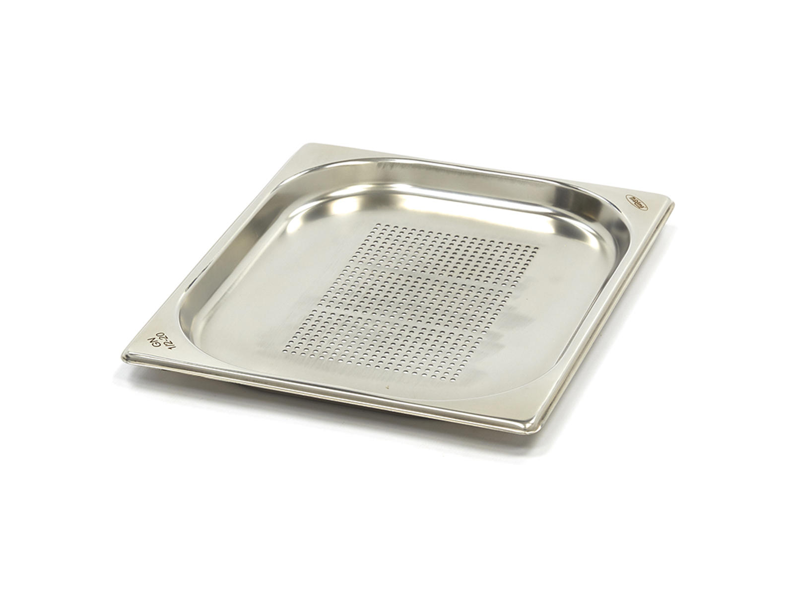 El diseño perforado del contenedor lo convierte en una herramienta indispensable en la cocina profesional. Los numerosos pequeños agujeros aseguran un drenaje rápido y uniforme, evitando que los alimentos se queden en agua y, por lo tanto, manteniendo su frescura y consistencia. El acero inoxidable no solo es higiénico, sino también resistente a la corrosión, lo que es crucial en entornos con alta humedad y cambios de temperatura.