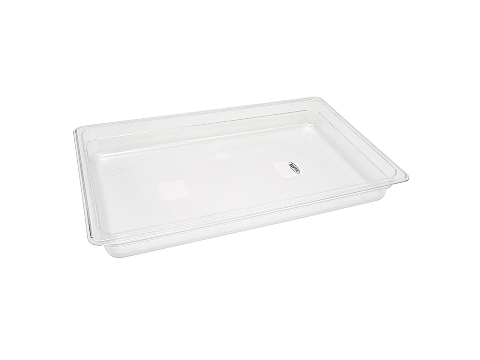 Este contenedor 1/1 GN de policarbonato con una altura de 65 mm está diseñado específicamente para cocinas profesionales. Con una capacidad de 9 litros y fabricado en policarbonato transparente, combina durabilidad con funcionalidad práctica, permitiéndote tener siempre una visión clara de su contenido.