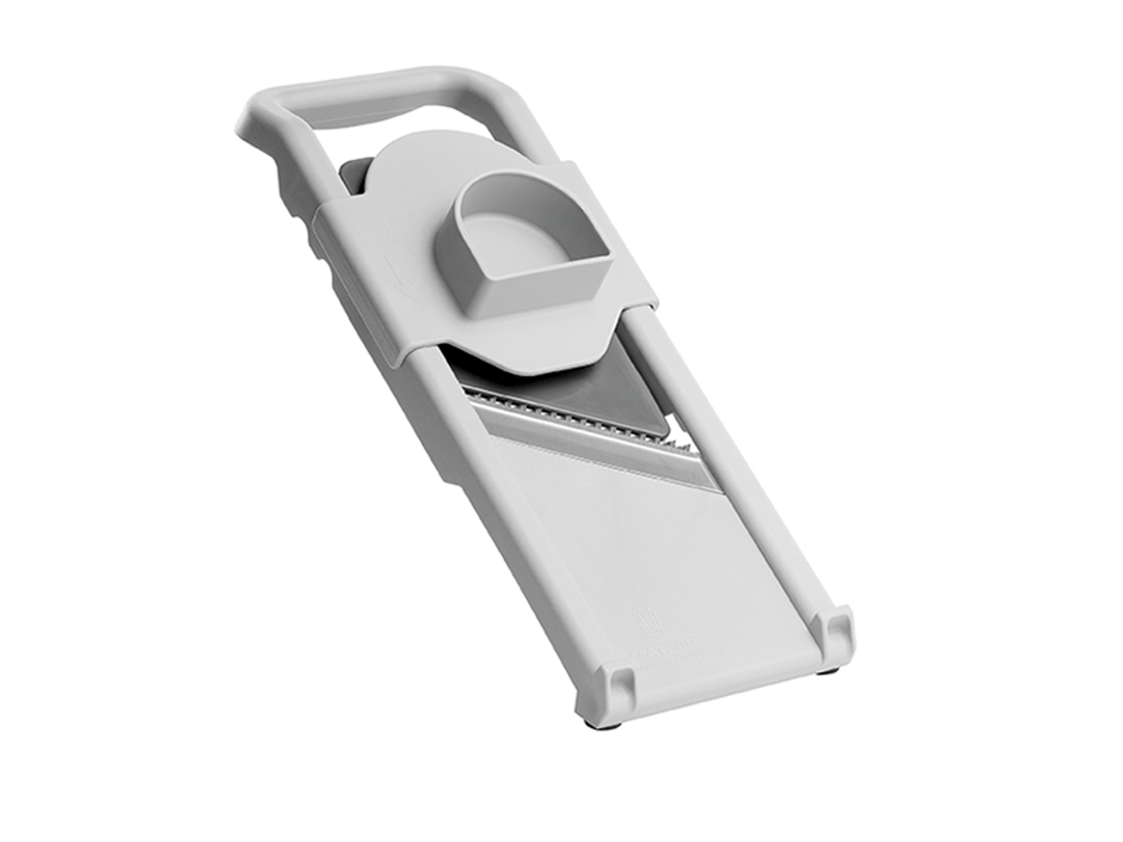 La mandolina es apta para lavavajillas, pero para mantener la agudeza de las cuchillas se recomienda enjuagarla manualmente bajo agua corriente inmediatamente después de su uso.