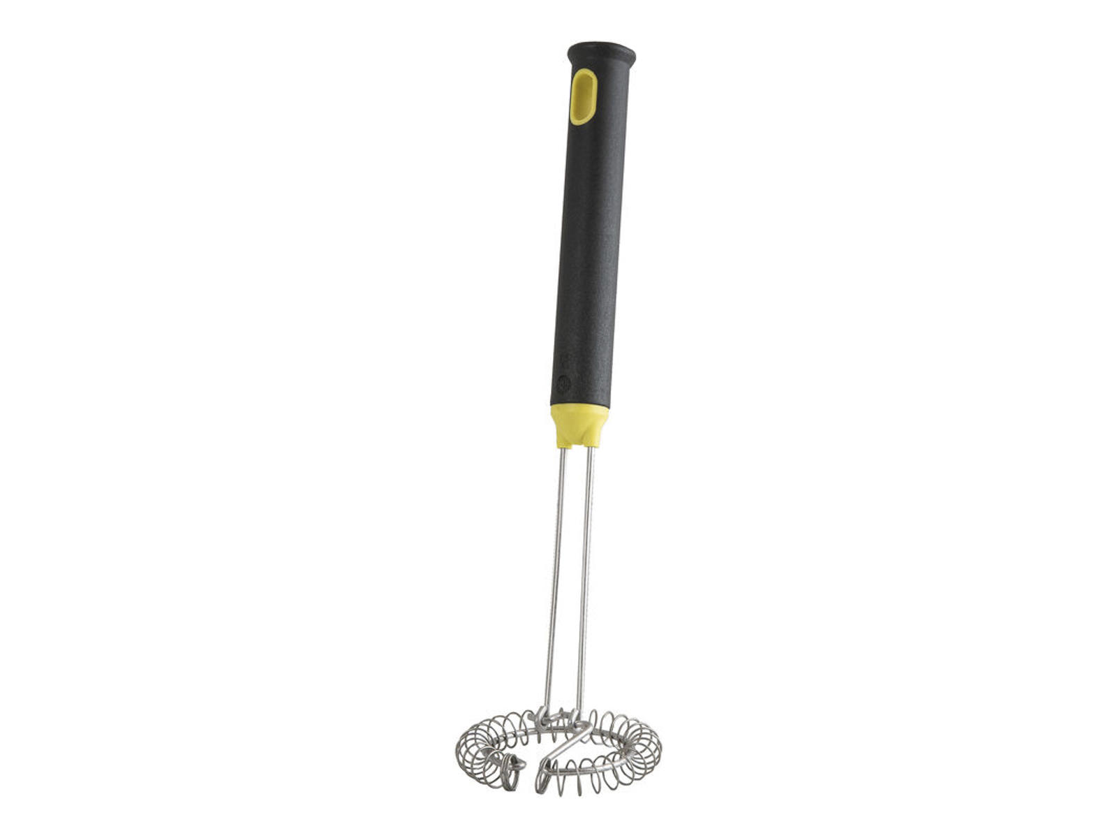El mango negro/amarillo está diseñado con un enfoque en la ergonomía, lo que proporciona un agarre seguro incluso con manos húmedas o grasientas. Esto reduce la fatiga en las muñecas y antebrazos durante un uso prolongado. La longitud total de 500 mm te da un buen alcance, permitiéndote mezclar en ollas profundas sin acercarte demasiado a la fuente de calor o recibir vapor caliente en la cara.