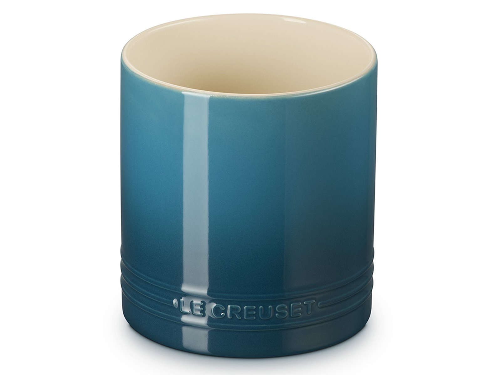 Como parte de la serie Signature de Le Creuset, la jarra de utensilios presenta el diseño característico de los tres anillos, que se ha convertido en un símbolo de la marca. El color teal profundo añade un elemento de color elegante a la cocina y se puede combinar con otros productos de Le Creuset para lograr una expresión coherente. La calidad de la cerámica asegura que la jarra mantenga su aspecto atractivo año tras año.