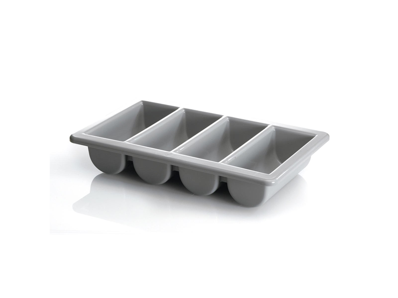 Los cuatro compartimentos separados del organizador permiten mantener diferentes tipos de cubiertos separados y organizados. Esto reduce significativamente el tiempo de manejo, ya que el personal no tiene que clasificar los cubiertos durante los momentos de servicio más ocupados. El color gris es discreto y se adapta a cualquier entorno de cocina, mientras que su forma rectangular asegura una óptima utilización del espacio de almacenamiento. Las medidas estandarizadas de 1/1 GN (53 cm de largo) significan que se adapta perfectamente a los sistemas de almacenamiento existentes en cocinas profesionales.