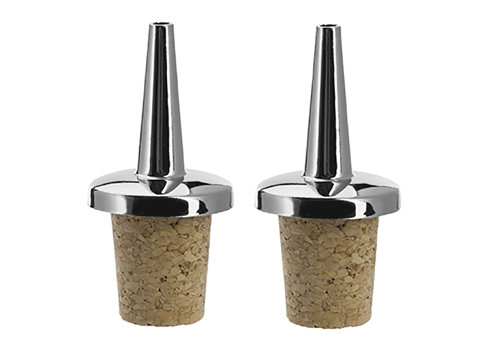 Los vertedores tienen una altura de 49 mm y pesan solo 10 gramos cada uno. Están fabricados con plástico ABS y corcho natural, lo que los hace ligeros pero al mismo tiempo duraderos. Para asegurar una larga vida útil, se recomienda limpiar los vertedores a mano en lugar de en el lavavajillas.