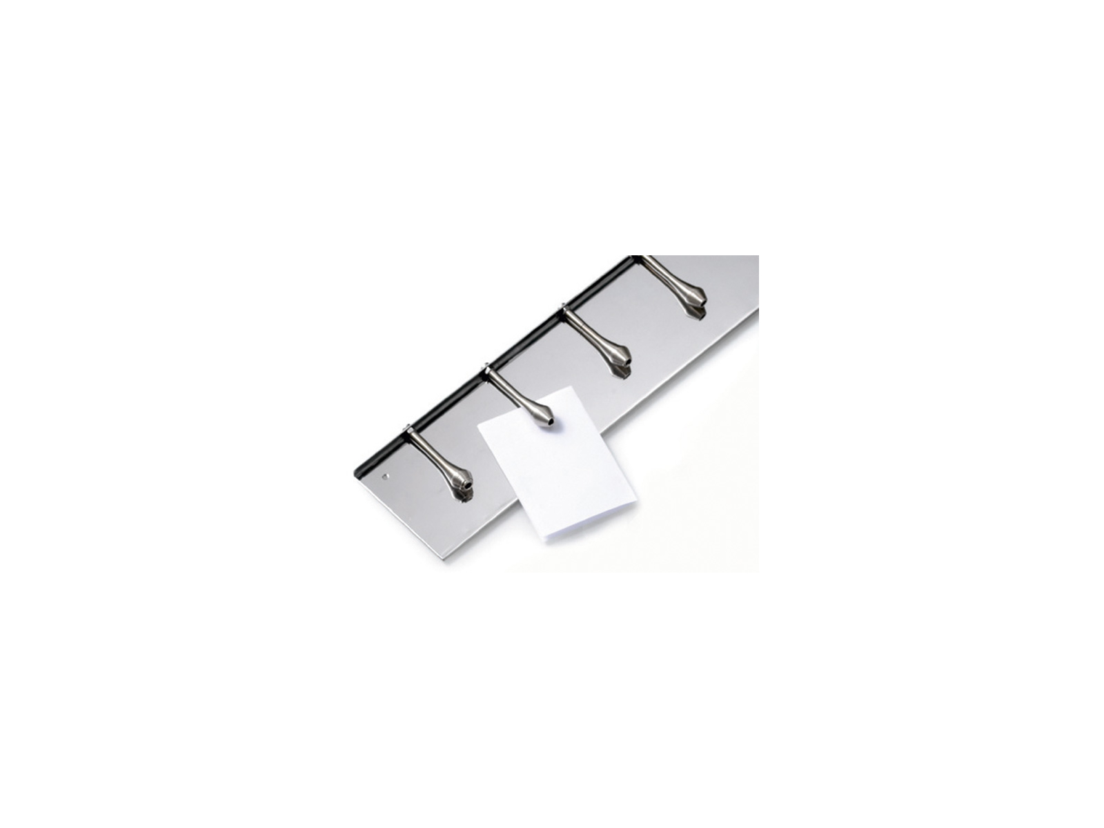 La bonskinne mide 62,5 cm de largo y 9,5 cm de ancho, lo que proporciona buen espacio para recibos de pedidos de tamaño estándar. Con 8 clips de resorte, puedes tener hasta 8 recibos sujetos al mismo tiempo. La barra está fabricada de acero inoxidable aprobado para uso alimentario, apto para lavavajillas, lo que facilita la limpieza después de su uso. El peso de 600 gramos asegura estabilidad en la superficie de la cocina.