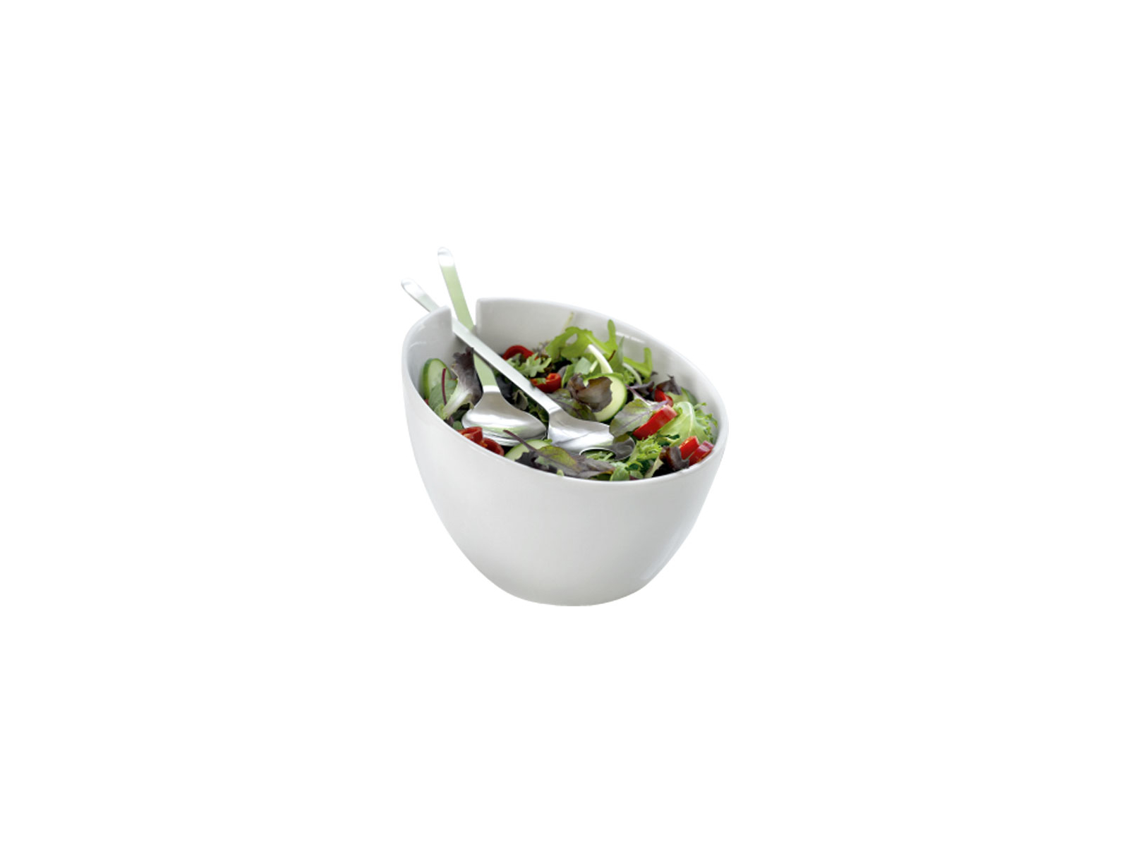 El bol de ensalada está diseñado con un borde ligeramente inclinado que facilita un servicio preciso y sin esfuerzo. Un discreto corte en el borde funciona como un práctico soporte para los utensilios de ensalada incluidos, para que nunca tengas que buscar los utensilios de servicio. La porcelana blanca crea un hermoso contraste con el acero mate cepillado, lo que le da al conjunto una expresión atemporal que se adapta a cualquier cocina y a cualquier mesa.