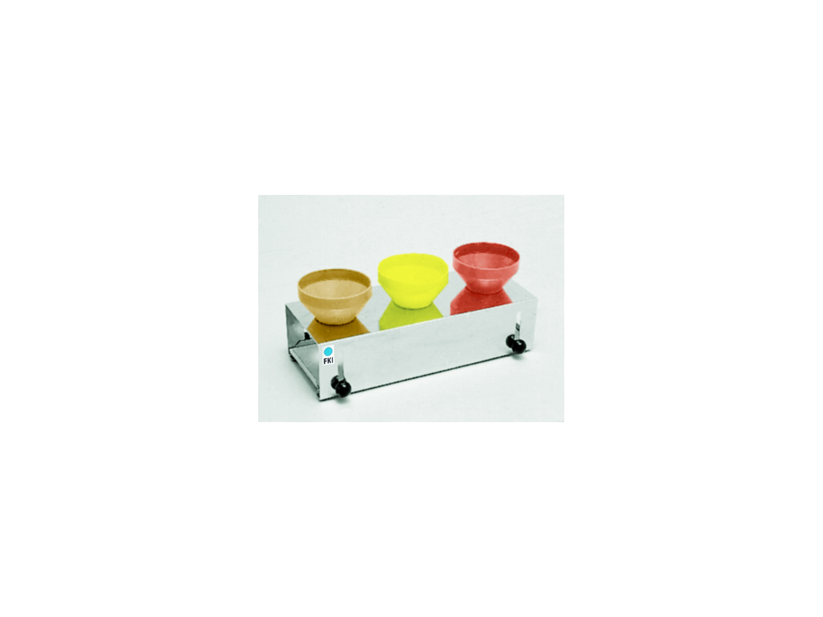 El soporte para botellas de FKI mide 150 mm de altura, 300 mm de ancho y tiene una profundidad de 125 mm, lo que le da un perfil compacto que se adapta a la mayoría de las áreas de servicio. Está diseñado para sostener tres botellas de aderezo estándar y está fabricado con materiales que garantizan durabilidad en entornos de cocina ocupados.