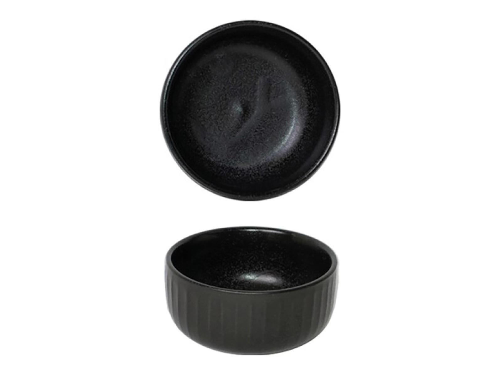 El cuenco mide 9 cm de diámetro y tiene una forma alta que ofrece buena capacidad a pesar de su tamaño compacto. Está fabricado con porcelana de calidad, que es tanto duradera como de bonito acabado. El color negro se presenta en un diseño elegante que complementa la serie Gordion de Cegeco.