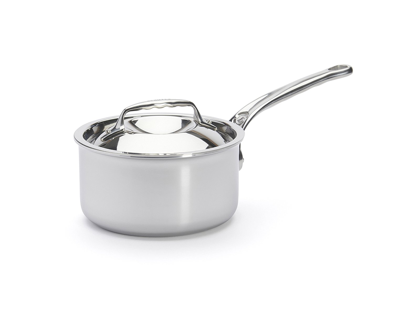 La cacerola Affinity de De Buyer, con tapa y un diámetro de 16 cm, está fabricada con una avanzada construcción de 5 capas, donde el aluminio está encapsulado entre capas de acero inoxidable. Con una capacidad de 1,7 litros y un mango remachado ergonómico de acero inoxidable fundido, esta cacerola es ideal para preparar salsas, reducciones, verduras y porciones pequeñas en la cocina profesional.