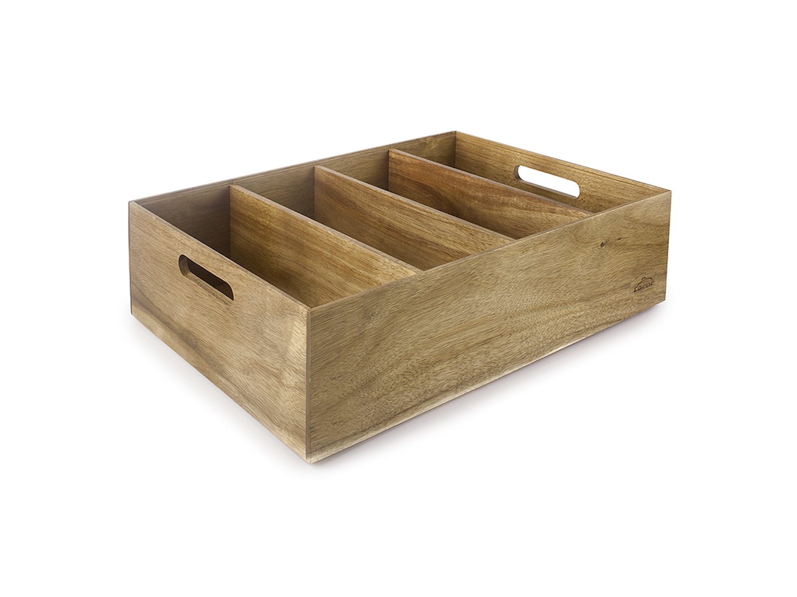 Soporte para cubiertos en madera de acacia con cuatro compartimentos prácticos